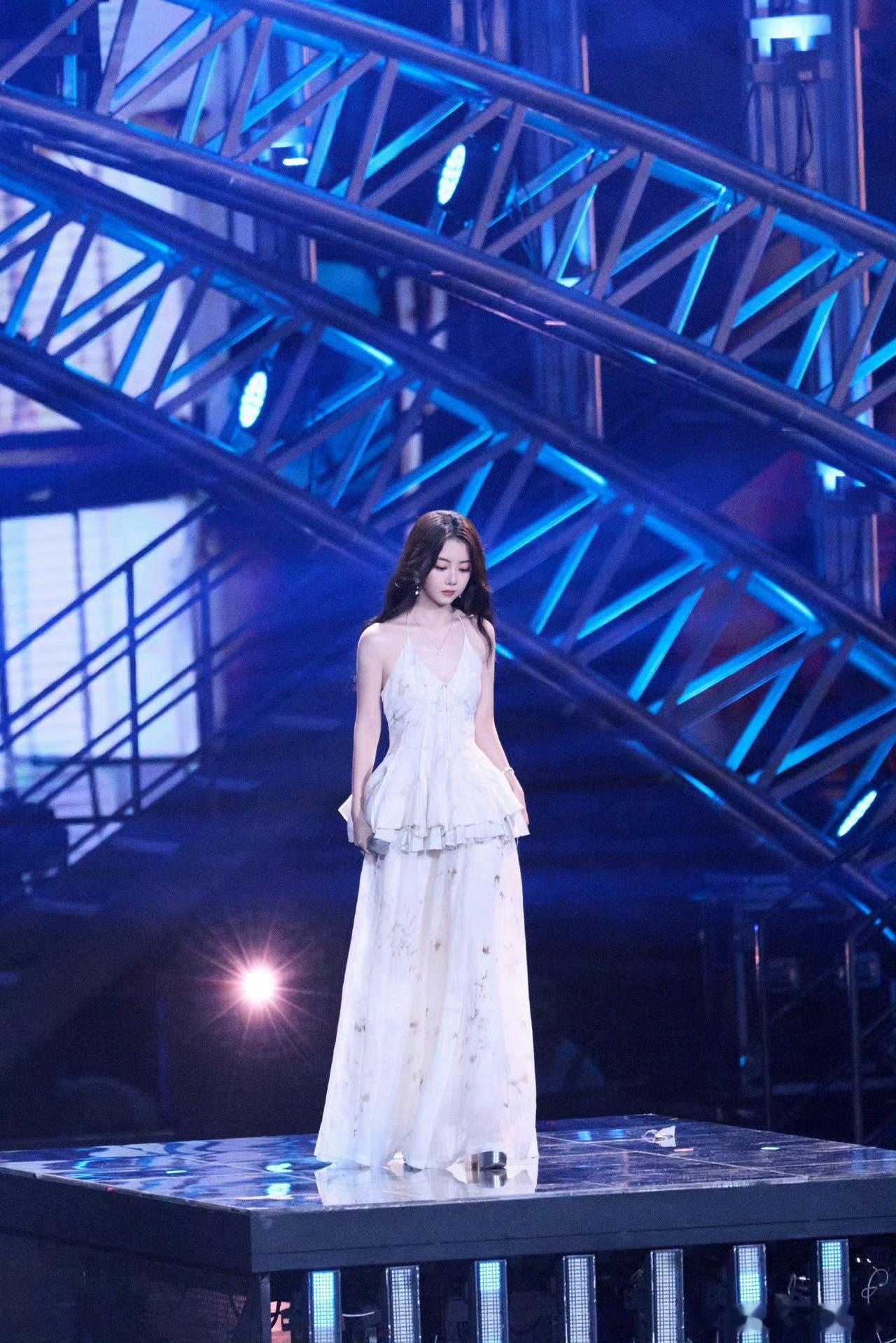谭松韵李尖尖美成白月光了跨年晚会谭松韵波浪卷配白裙超惊艳,合作舞台超稳,谁能不