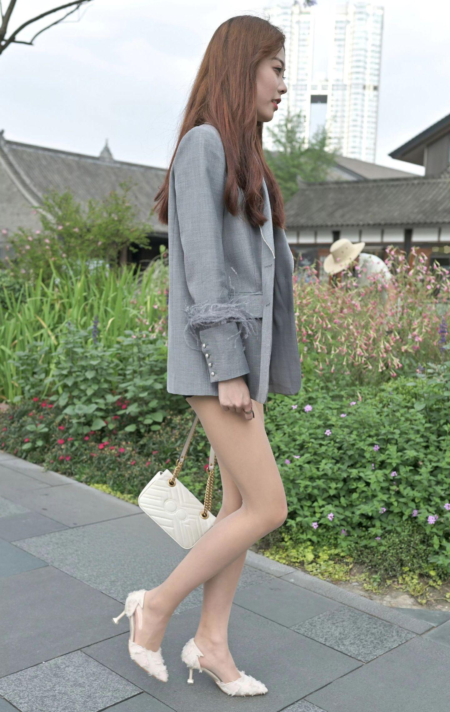 米白针织衫配黑色短裤,脚踩水晶跟凉鞋,都市丽人出行即风景每日穿搭时尚穿搭