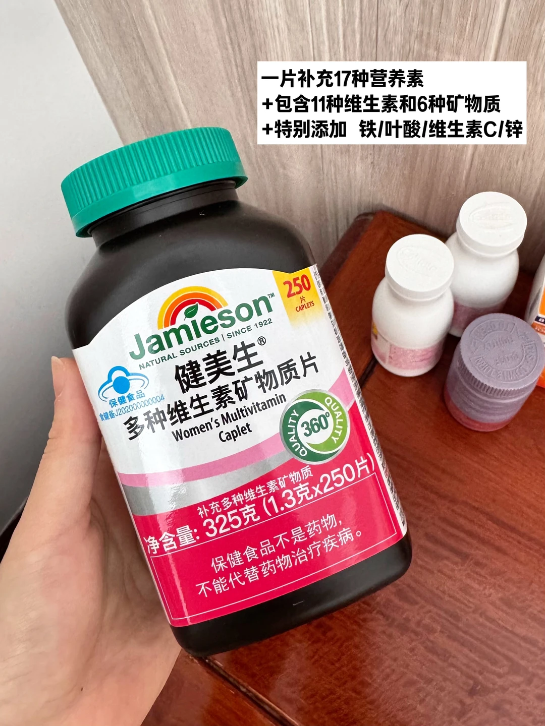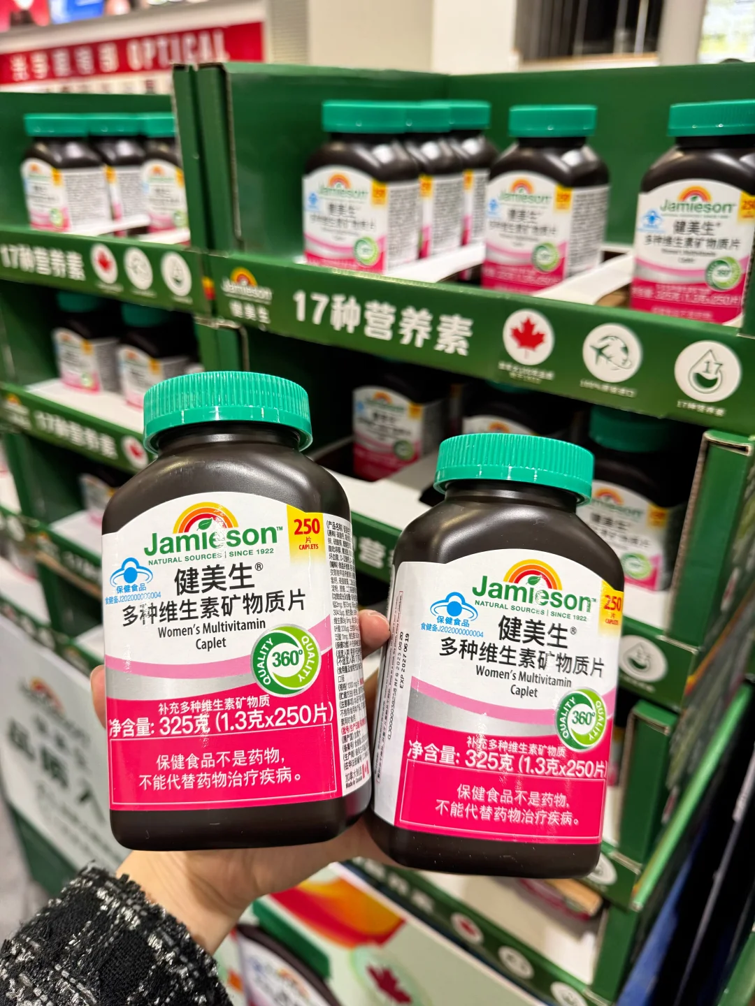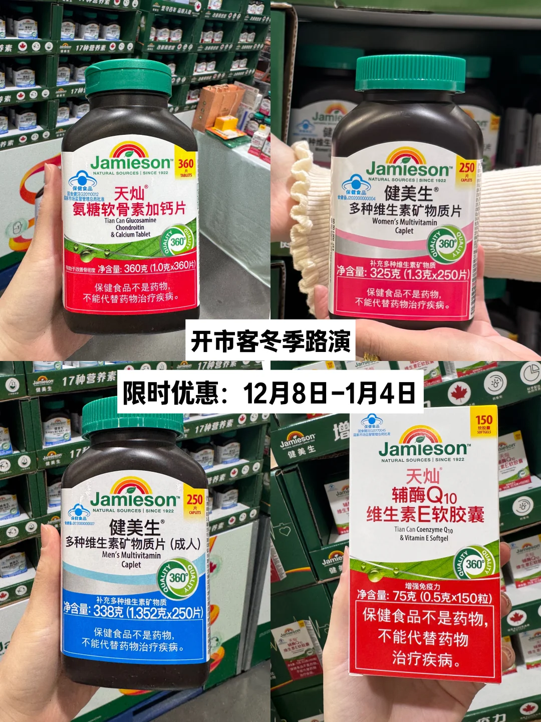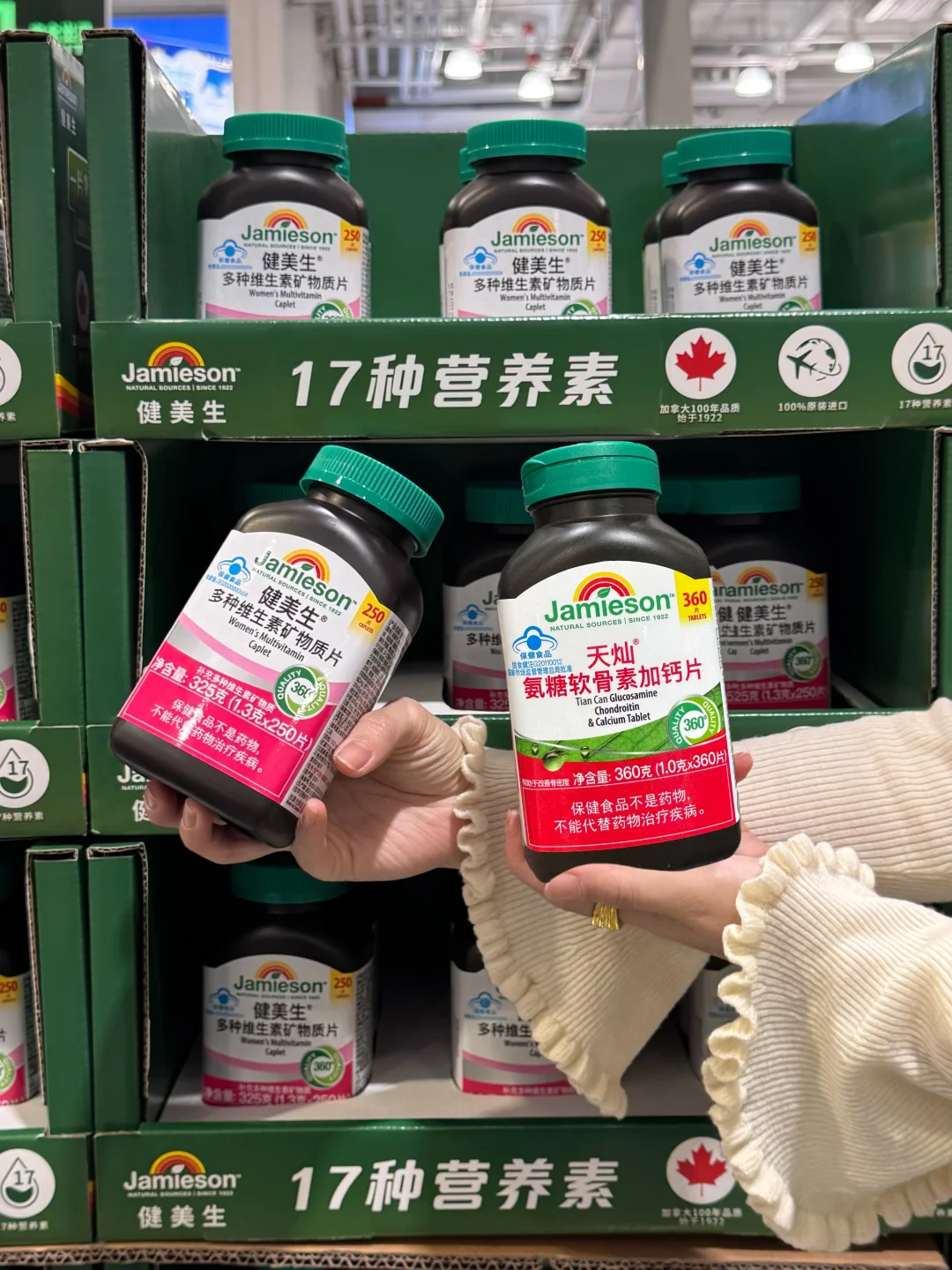 这次主要想看看营养补剂,没想到真的挖到宝了——Jamieson健美生,一个来自加拿大的百年健康品牌,1922年就创立了,Slogan叫“坚守百年,品质入微”,听起来就很有信赖感。查了下背景,它家在过去20年里研发过2000多种独家配方,每年做超过50万次产品测试,从原料到出厂要经过至少360道检测工序,连工厂都是加拿大卫生部批准、还具备澳洲TGA资质的,这品控真是没话说。