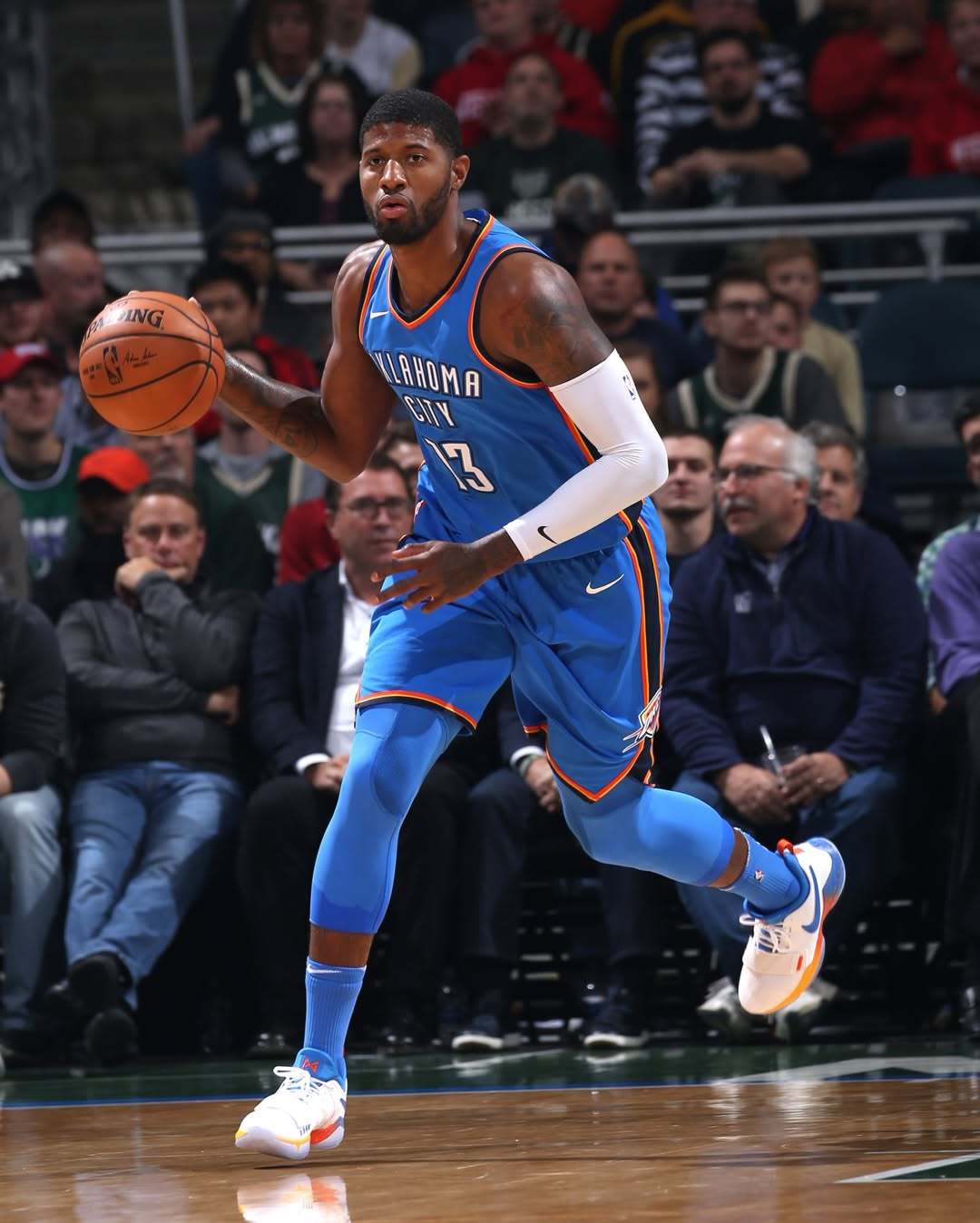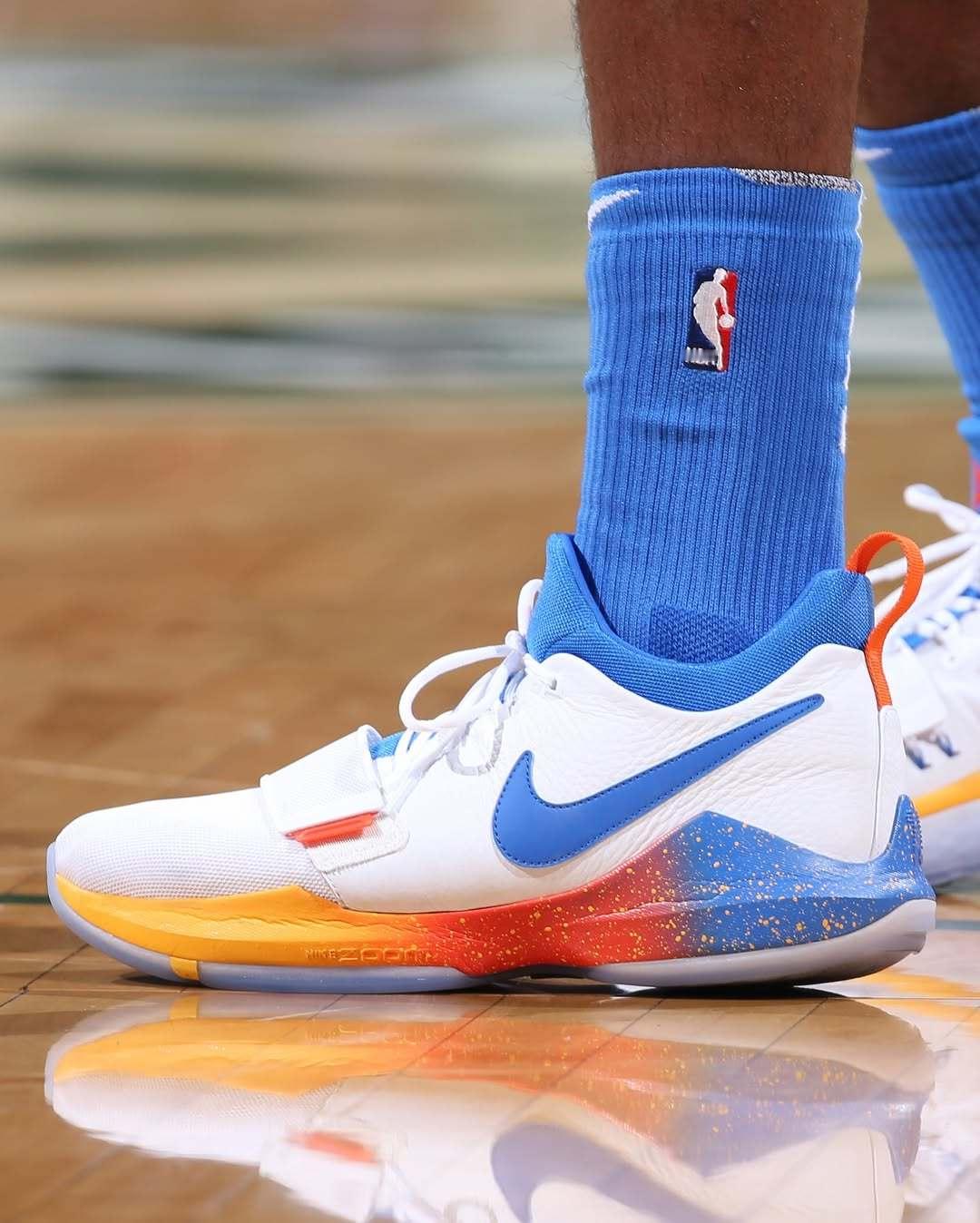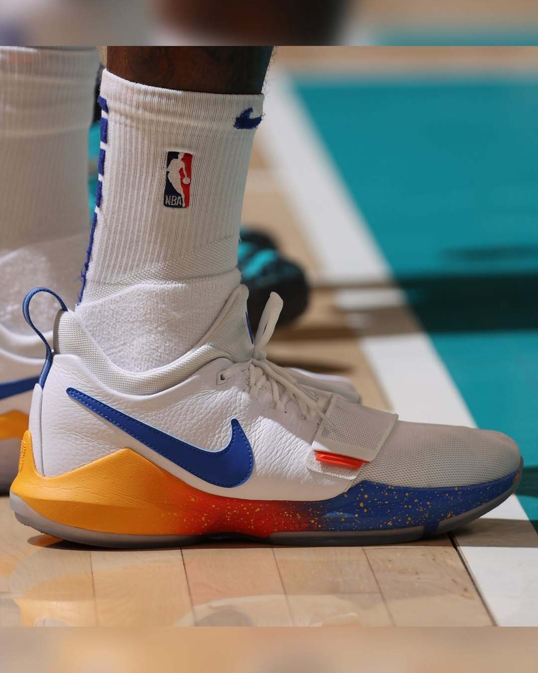Back like it's 2017!分享保罗·乔治昨日对阵灰熊队比赛上脚的一双Nike PG1 PE配色&雷霆时期上脚的一双PE配色~费城76人nikepg1PaulGeorge保罗乔治