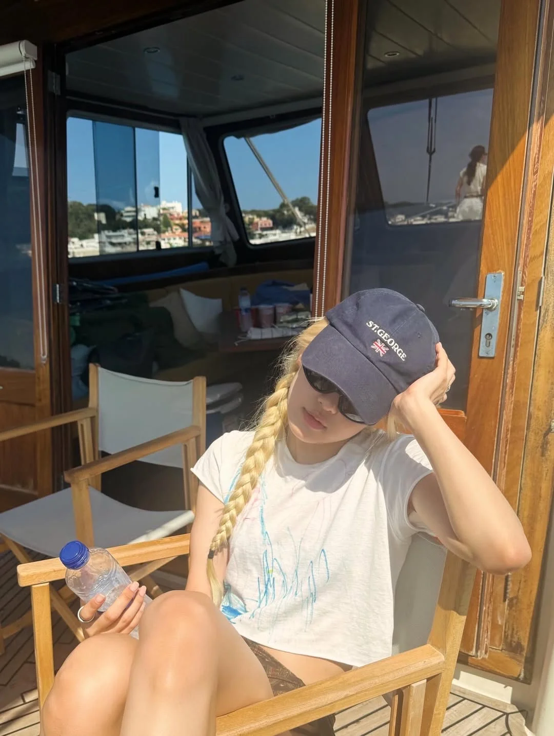 粉衫映夏草木香粉色T恤如撷取的夏花般明媚,白裤衬着茵茵草坪,静坐于绿意间的