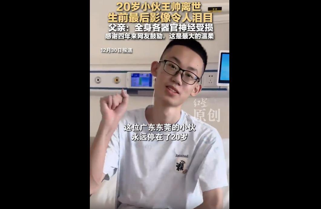 广东东莞 20 岁小伙王帅,16 岁考入重点高中后确诊格林巴利综合征,全身神经受损致行走、生活不能自理,伴随剧痛折磨四年。 期间父母倾尽所有,父亲辞职陪护、辗转国内外求医,甚至生下妹妹尝试脐带血干细胞治疗却未达预期。 王帅三次复学均失败,2025 年 12 月 22 日凌晨不堪病痛沉湖离世。 粉丝自发送别,父亲坦言儿子终得解脱,感谢网友四年鼓励,事件也暴露出罕见病镇痛、医保及心理支持的诸多短板。 王帅这生命中最后的四年,是一场与剧痛博弈的孤军奋战。 本该是意气风发的年纪,他却被神经疼痛缠得寸步难行,走路要咬牙、睡觉成奢望,连翻个身都成了奢望。 三次复学的尝试,是他对正常生活的最后执念 —— 谁不想和同龄人一样坐在教室里刷题、打闹?可身体的剧痛一次次把他拽回病床,连 “坚强” 二字都成了压垮他的稻草。 他赴湖前拍打灰尘的举动,被网友称作 “骨子里的体面”,这体面背后,是不愿被病痛碾碎的尊严,是实在撑不下去的绝望。 这个 20 岁的少年,没败给命运的刁难,却败给了无解的疼痛和缺位的支持,想想就让人揪心。 罕见病患者的镇痛需求不该被忽视,医保政策的覆盖范围需要拓宽,校园的人文关怀需要加码。 只有各方合力,才能让更多 “王帅” 们不再独自承受病痛的煎熬,让他们感受到,这个世界除了疼痛,还有更多温柔与希望。