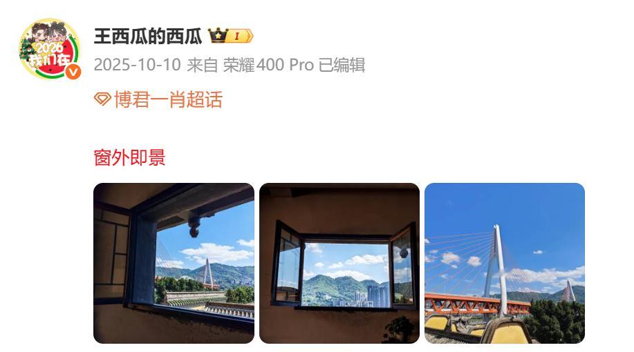 博君一肖 小奥发的博哥构图,突然让我想到10月份去重庆时,我发过一条同样思路的微博窗外即景也算是被我撞上了吧