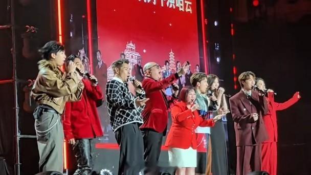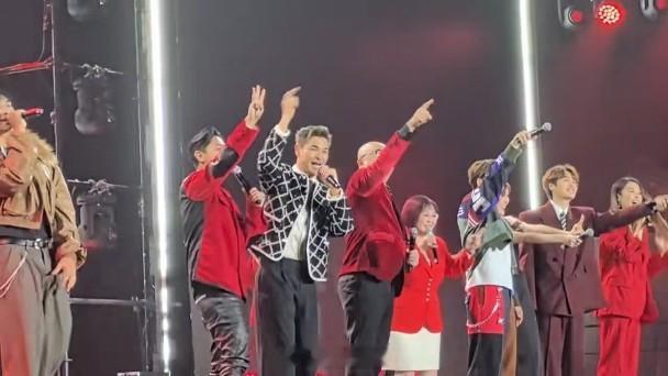 【On.cc】陳展鵬關智斌江門跨年全場High爆 劉佩玥做足表情管理扭轉負評英皇藝人關智斌(Kenny)、視帝陳展鵬聯同鄭俊弘(Fred)、劉佩玥(Moon)、胡鴻鈞、吳業坤、林盛斌(Bob)等,昨晚(31日)於江門舉行除夕跨年騷,過萬人場館座無虛席,陳展鵬更獲得太太單文柔和女兒撐場,眾星於台上大唱多首經典歌曲,令全場氣氛高漲。Moon早前於廣州首度舉行個人演唱會時,被網民批獻歌時欠表情管理,面目猙獰秒變Joker,這次她吸取教訓,全程做足表情管理,笑容滿面,令台下觀眾聽到如癡如醉,成功扭轉負評。眾星與現場觀眾倒數過後,一齊合唱《財神到》作結尾,夠晒好意頭!一齊到江門跨年。全場氣氛高漲。陳展鵬獻唱。相當投入。關智斌嚟啦!一齊唱啦!胡鴻鈞獻Sing!劉佩玥出場啦!劉佩玥呢次做足表情管理。笑容滿面!表情十足!