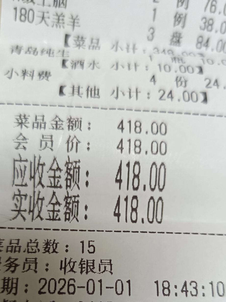 一天两顿饭店,真的有点吃不消! 中午吃的中餐,我也没吃太多,就光顾着陪前小叔子聊天啦! 晚饭本来是两个大伯哥两个大伯嫂,定好我们六个,后来大哥大嫂的孩子回来了,非得邀请他们和亲家母一起过元旦,他们没法推辞,所以就剩下了二哥二嫂和我们两口子。 到那以后我老公先交了三百块钱,不能让二哥二嫂花钱。 都没开车,可以开怀畅饮! 我和二嫂都没喝酒,以茶代酒! 他们哥俩喝了一斤白酒,两瓶啤酒。 谈起以前,二哥一个劲的说感谢我,感谢我把他弟弟照顾得这么好,他弟弟也算是翻身农奴把歌唱!二嫂也说起了我老公以前多么不容易,整天捂着胃,大家都担心他胃不好! 自从我俩在一起以后,每天早上都是小米粥,确实养胃,多年的胃病彻底好了! 反正二哥总是说感谢我!我都不好意思了! 用不着感谢!我俩是夫妻,照顾好他,我才有幸福可言! 七点了,我们才各回各家! 一共花了四百一十八元!还剩了很多肉,打包给二嫂拿回家啦! 大家一起吃饭,打包的时候,我基本都不要,都给别人!如果实在没人要,我肯定会打包带回家!不管穷富,不能糟蹋粮食!任吃了别扔了! 酒足饭饱,还有小作文没写完,抓紧时间完成作业吧!