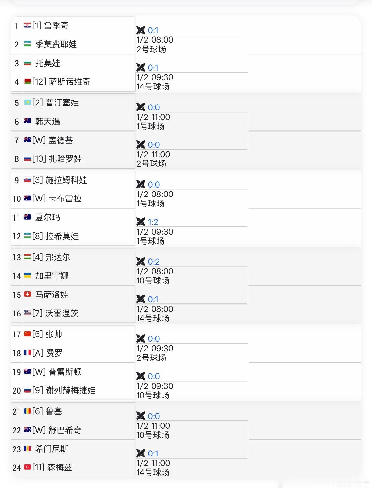 🔵WTA500布里斯班站女单资格赛09:30【5】🇨🇳张帅vs【A】🇫🇷费罗 🎥本来是打🇦🇲阿瓦涅相但是对手退赛了新年第一站,加油⛽中国网球网球2026赛季