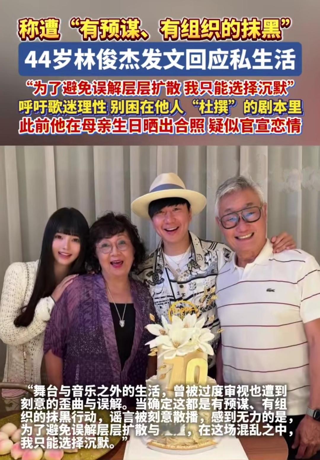 谁的青春里没听过几首林俊杰的歌啊?从《江南》的烟雨朦胧到《可惜没如果》的遗憾怅然,他的声音陪我们熬过失恋、撑过备考夜,怎么突然就被一堆“实锤”砸得措手不及? 刷到那些拼凑的截图、模糊的视频时,第一反应不是质疑偶像,而是心疼——一个出道20年零绯闻、连舞台失误都要反复道歉的人,突然被冠上“人设崩塌”的帽子,背后全是“有预谋的抹黑”。 他在回应里没喊冤没卖惨,只说“相信清者自清”,还不忘提醒歌迷保持理性。其实我们早就过了盲目追星的年纪,在意的从来不是他是否单身,而是他始终没变的真诚。 舞台上的稳、对音乐的执着、低谷时的隐忍,这些刻在时光里的细节,哪是几张截图就能抹掉的?愿每个认真生活的人,都能被世界温柔以待,也愿我们的青春回忆,不被恶意消耗。