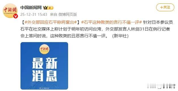 近期,数典忘祖日本政客石平计划窜访台湾地区的消息引发热议。此人一贯罔顾历史与法理,频频就涉台议题发表不当言论,其行径早已遭到多方批评。 世界上只有一个中国,台湾是中国领土不可分割的一部分,这是国际社会公认的铁一般的事实,也是中日两国关系发展的政治基础。 多年来,坚持一个中国原则始终是维护中日关系健康稳定的前提,这一点有着明确的文件依据和共识支撑。 石平此番窜访,本质上是借涉台议题博眼球、谋私利的政治表演。这种无视主流民意、破坏地区和平稳定的举动,既得不到两岸同胞的认同,也会遭到国际社会有识之士的反对。 历史大势浩浩荡荡,任何企图分裂自己国家的行径,最终都只会沦为贻笑大方的泡影。