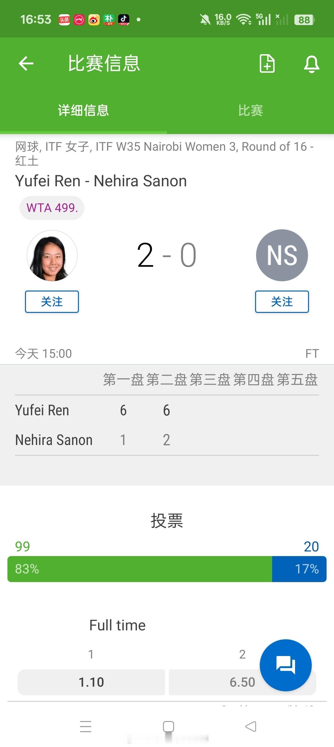 小花小草资讯 【🇰🇪内罗毕W35】女单第二轮7号种子任钰菲6-1/6-2 横扫🇫🇷球员Sanon取得中国球员26年开门红收获8分 即时排名:484(+15)