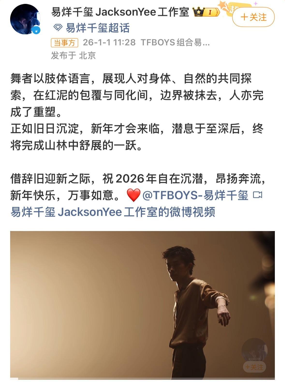 易烊千玺祝2026年自在沉潜易烊千玺 滴!!!一键接收的2026新年祝福!祝各位2026年自在沉潜,轻盈起舞✌️✌️