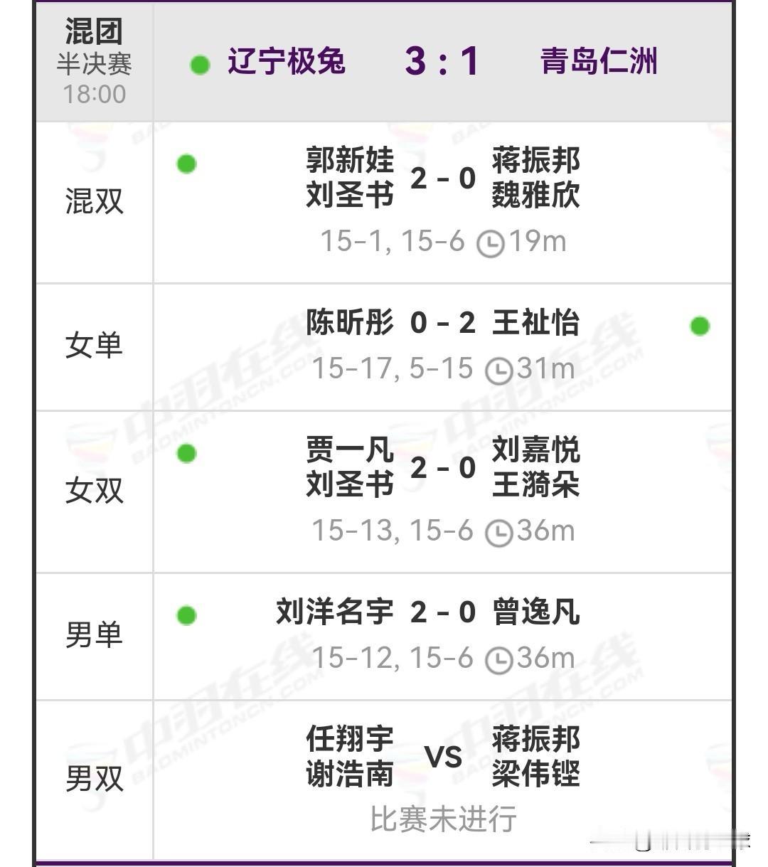 1月2日中国羽毛球俱乐部超级联赛决赛安排 今日,混团半决赛全部结束。厦门银行以3 - 0击败浙江竞体,辽宁极兔3 - 1淘汰青岛仁洲。 明日上午11:00,混团季军赛将拉开帷幕,对阵双方为青岛仁洲与浙江竞体。晚上18:00,混团决赛登场,由辽宁极兔对阵厦门银行。明日,刘洋名宇、凤凰组合、酱板鸭组合、安东森、王祉怡、梁伟铿等选手将出战。以下是明日详细对阵名单和今日详细战报: 羽毛球 羽毛球爱好者 羽毛球比赛 羽毛球赛事 羽毛球赛程 安东森 王祉怡