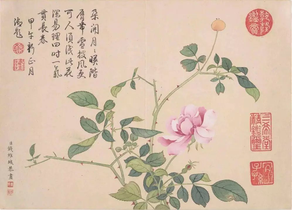 钱维城(1720-1772)[清]初名辛来,字宗磐,字幼安,号幼庵、稼轩、茶山,江苏武进人,人麟子。乾隆十年(1745)状元,官至刑部侍郎。自幼喜画,初从族祖母陈书学画写意折枝花果,颇为秀洁清丽,笔致老成,令人惊叹。后转学山水,经董邦达指授,遂变画法,以干笔勾勒,重视烘染,于是笔墨浑然一体,艺事益进。又能界画,名盛于世。供奉内廷,为画苑领袖。这就是中国风遇见艺术