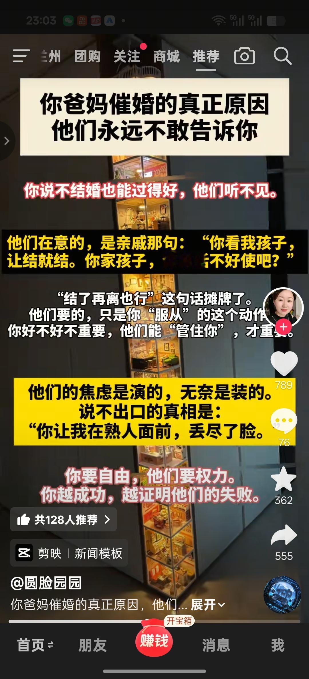 现在的年轻人被催婚主要是自己父母听了别人说的比如亲戚啊这些还有身边的聊天的老的话才去催自己的子女,这些不多管闲事少说闲话,现在年轻人也不至于这样,被催婚催得崩溃。其实这些父母是不想管自己子女婚姻的,全是那些人在害人,迟早要遭报应的。
