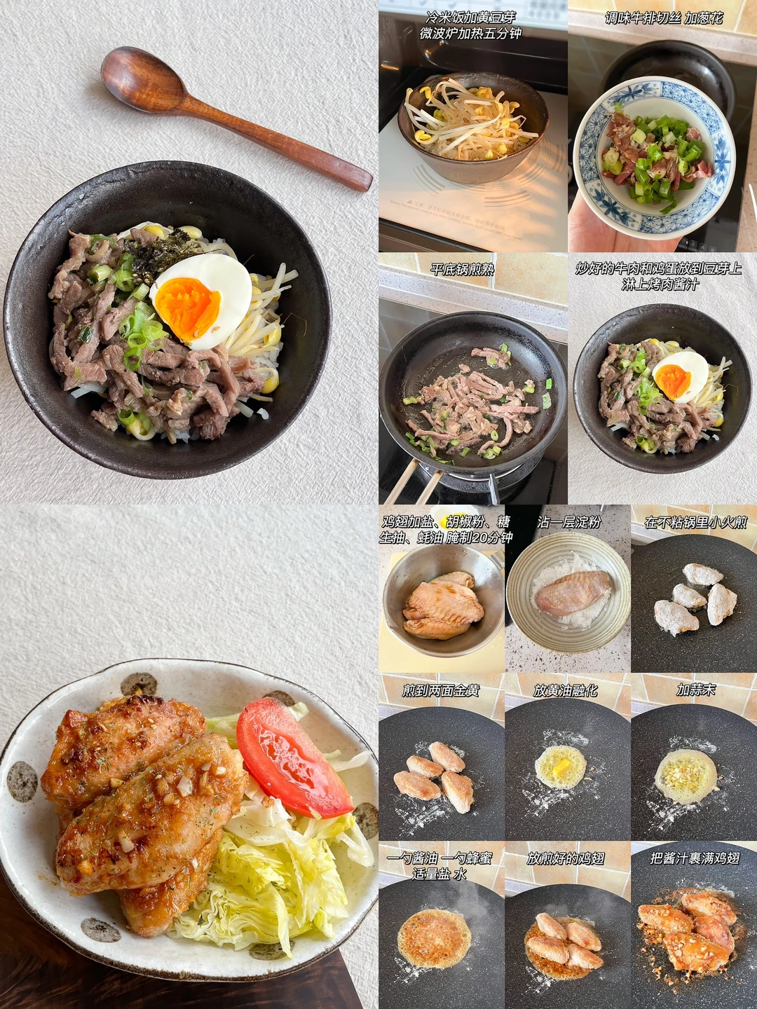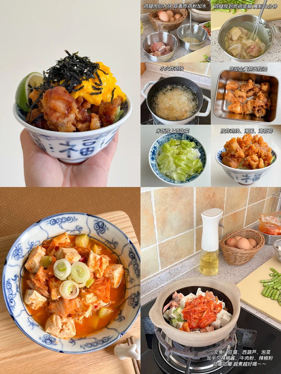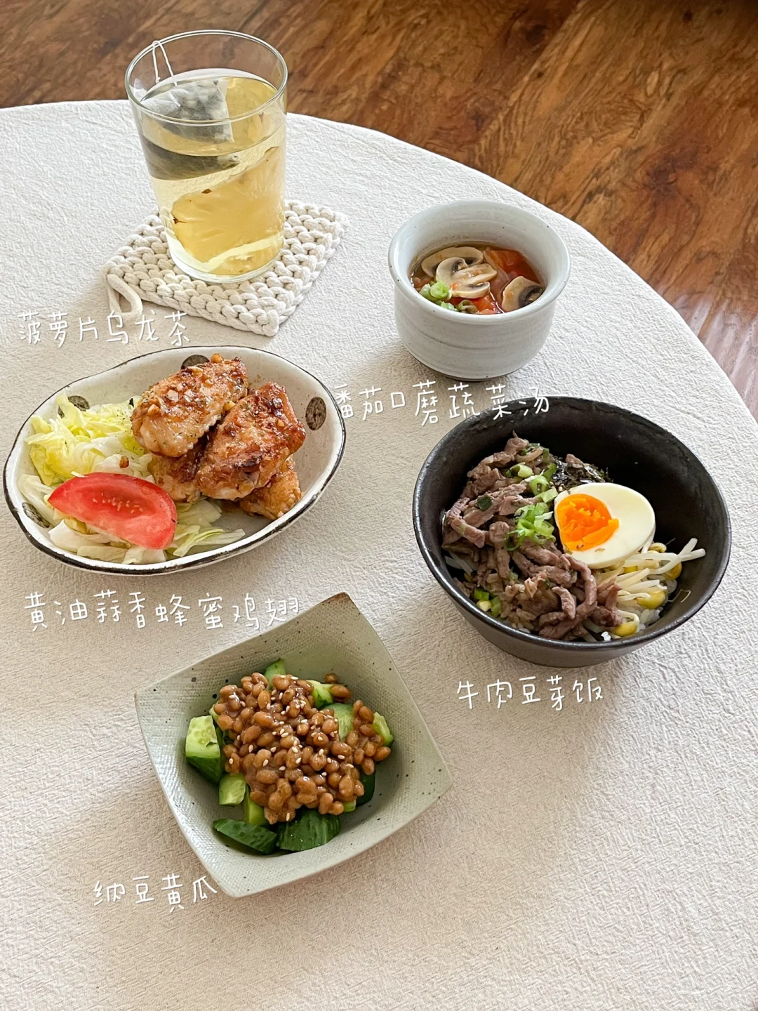 “一个人的小日子,也别糊弄啊~” 整理了最近喜欢的一人食午餐 简单又健康 做法都在图里啦 牛肉豆芽饭🥩 黄油蒜香蜂蜜鸡翅🍯 番茄口蘑蔬菜汤🥣 纳豆黄瓜🥒 菠萝片乌龙茶🍵 炸洋葱咖喱饭🍛 虾仁滑蛋🍤 泡菜豆腐🌶 凉拌海藻🌿 红豆酒酿炖奶🥛 梅子乌龙茶🍵 日式炸鸡饭🍱 三文鱼泡菜豆腐汤🐟 芦笋炒蘑菇🍄 茉莉冰豆浆🍨 泡菜芝士猪排🍖 土豆泥沙拉🥗 肉末蒸蛋🫕 冰橙汁🧃