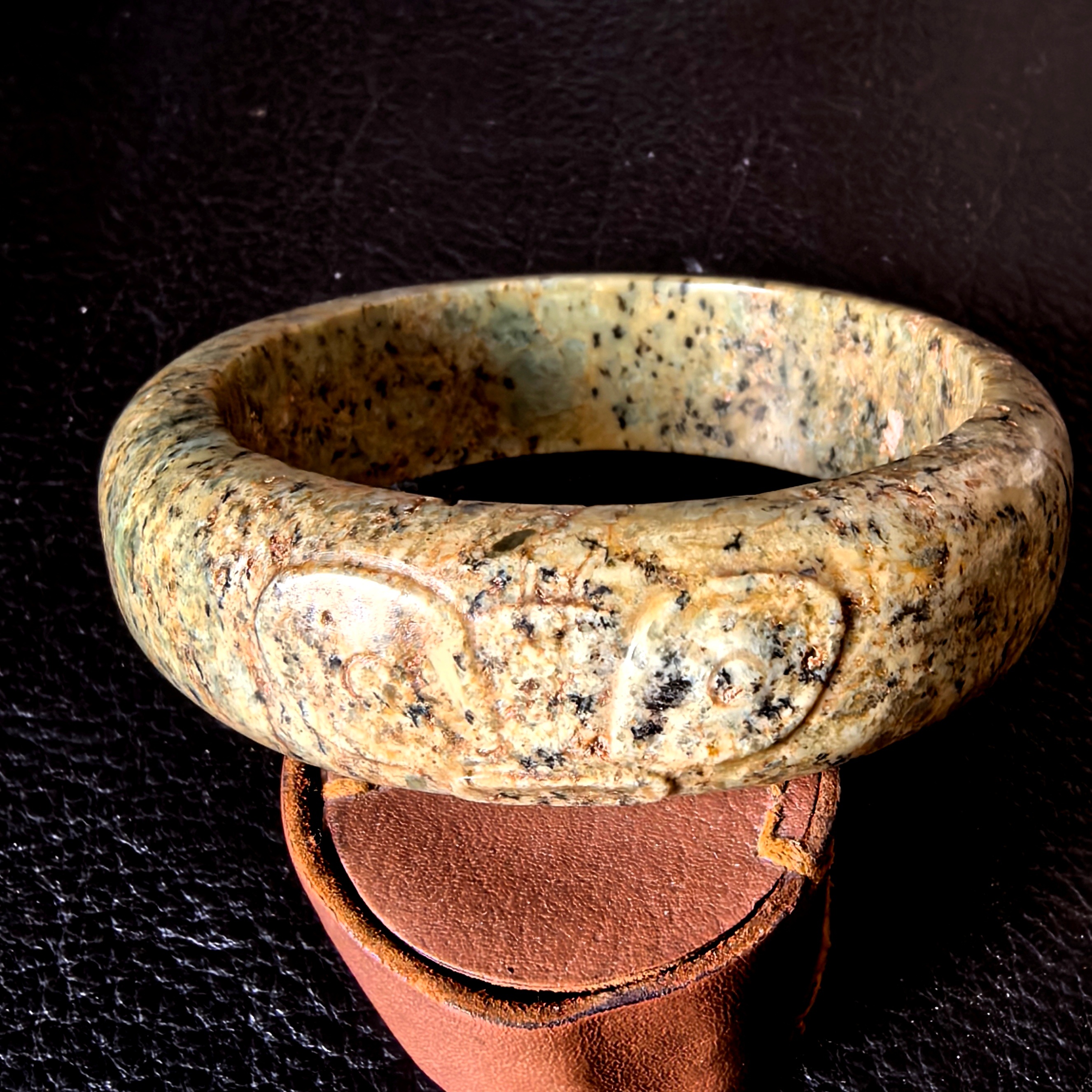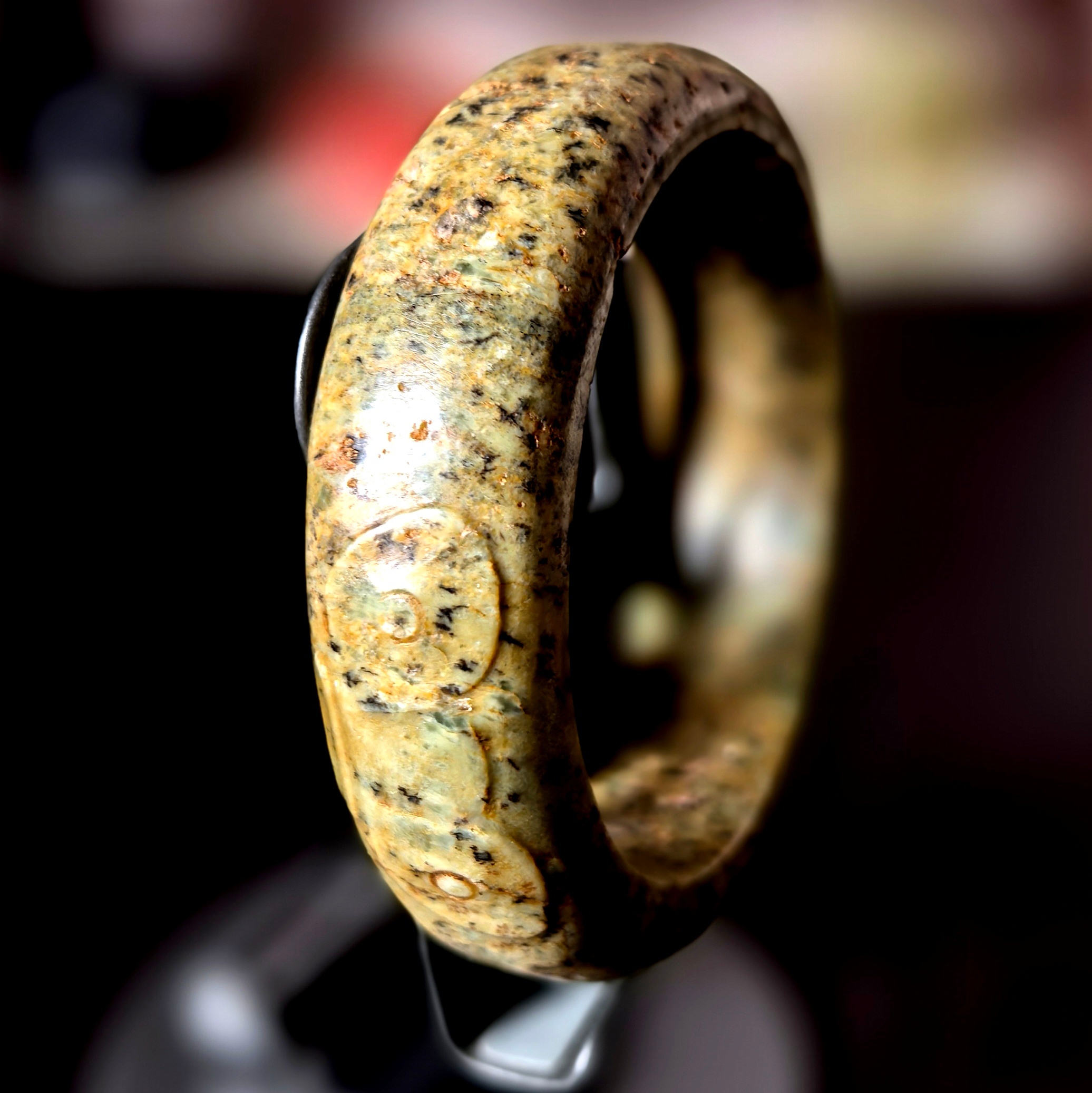 高古玉 古老的良渚玉镯,古朴老辣,初见薄薄的滋润包浆,直径双面饕餮兽面纹,扑素简单,看着特舒服…… 上海