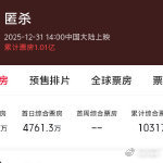 匿杀票房破亿 元旦档的强劲表现让我对这部电影刮目相看,朋友们都在悄悄讨论情节,看来这部作品真的火了,值得推荐给大家!