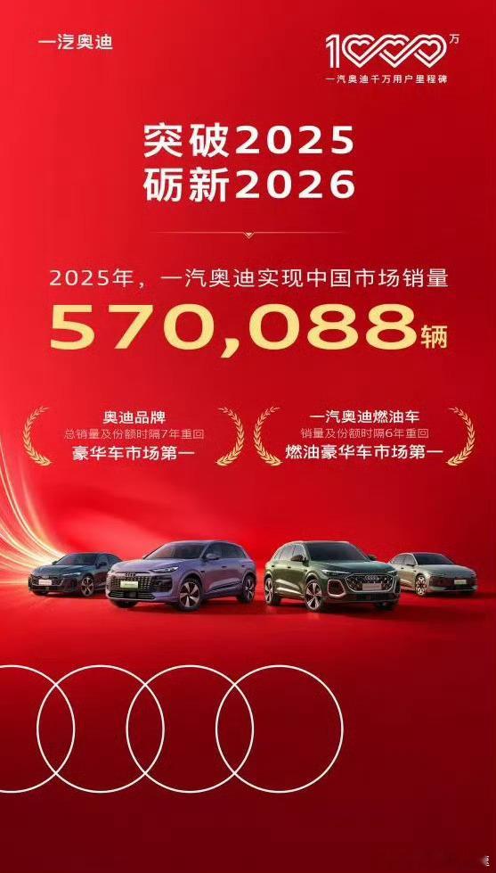 奥迪销量重回燃油豪华车第一名一汽奥迪全年零售570088辆,国产燃油豪华车细分市场份额 25.2%。燃油车市场份额时隔6年,重回第一,预计达26.8%。不破不立 这表现在现在来说真不容易啊
