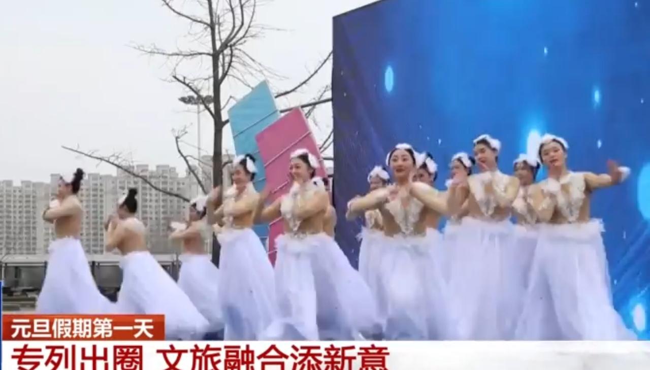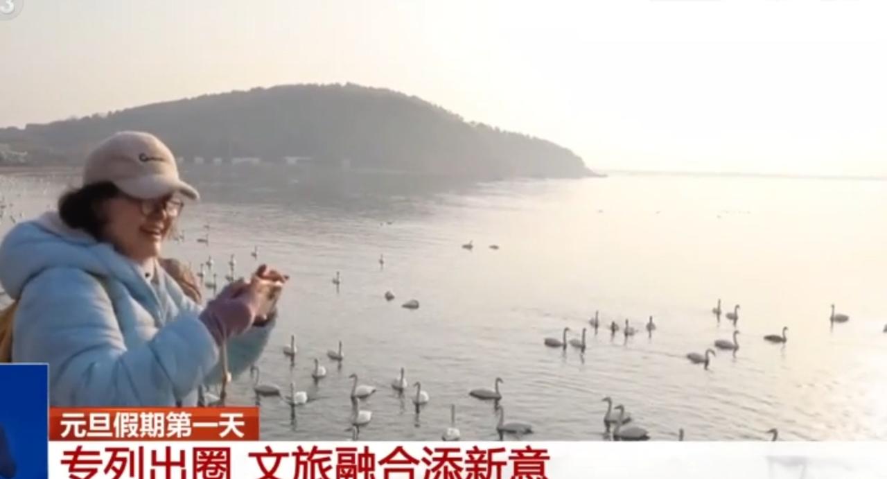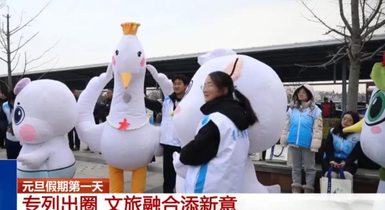 元旦假期首日,文旅专列成为出游新亮点,为文旅融合注入鲜活新意。湖畔水面上成群天鹅游弋,游客驻足用镜头定格这份自然之美;现场萌趣的天鹅玩偶与游客互动,氛围感拉满;舞者身着白色舞裙带来唯美表演,与天鹅主题相映成趣。自然景致、趣味互动与文艺演出相融,让游客在元旦假期体验到别样的文旅魅力。