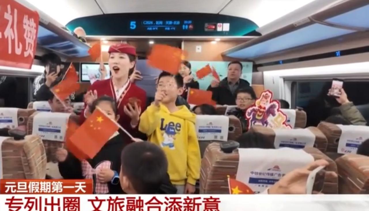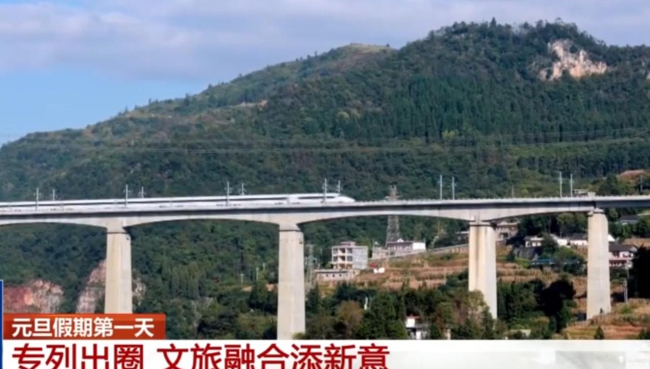 元旦假期首日,文旅专列成为出游新潮流,让旅途与文旅体验深度融合。车厢内,乘客手持国旗热情互动,乘务人员与游客一同营造出欢乐的节日氛围;专列穿梭于青山间的高架桥梁,窗外是绿意盎然的自然景致,一路风光无限。文旅专列将出行与体验结合,为元旦出游赋予了全新的玩法,彰显出文旅融合的独特魅力。