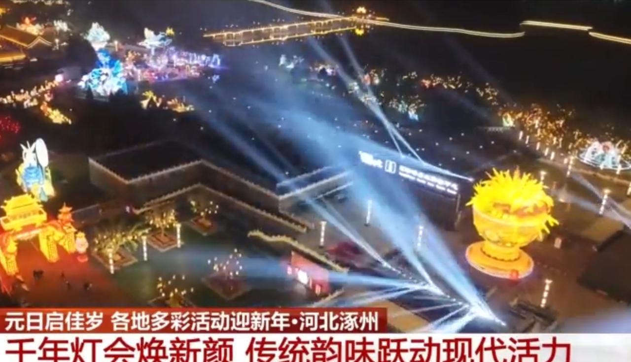 元日启佳岁,河北涿州千年通会灯市焕新登场,让传统年味碰撞现代活力。总台记者在灯市现场带来报道,绚烂的激光束划破夜空,与各式彩灯交相辉映;凤凰造型花灯色彩绚丽、栩栩如生,成为灯市的亮眼景致;万千彩灯次第点亮,将夜色勾勒成梦幻星河,让民众在这场古今融合的光影盛宴中,感受涿州灯会的独特魅力。