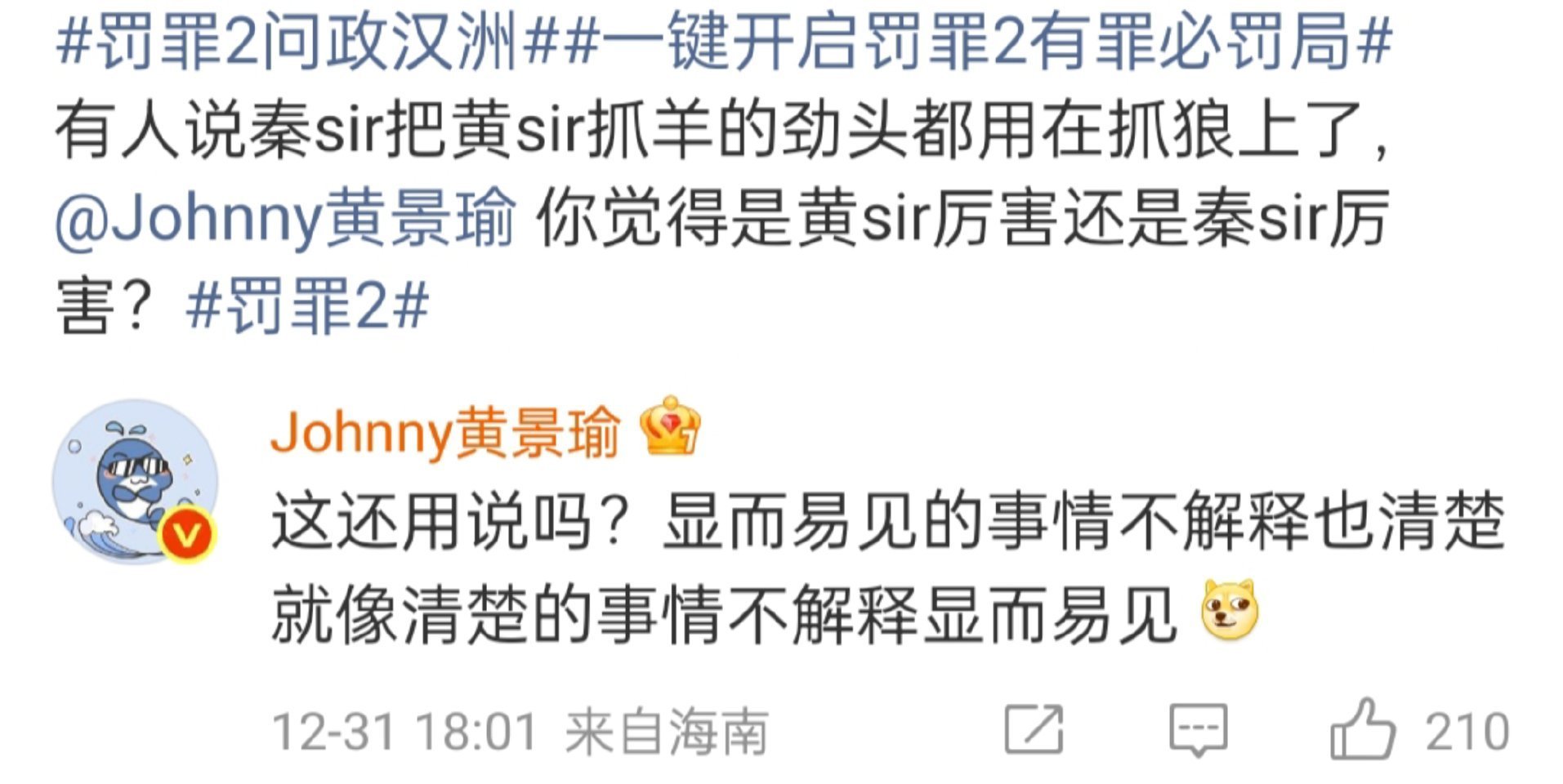 黄景瑜回复好有活人感黄sir太有梗了吧,面对网友的各种提问,咱黄sir也是活人感满满!太可爱了~