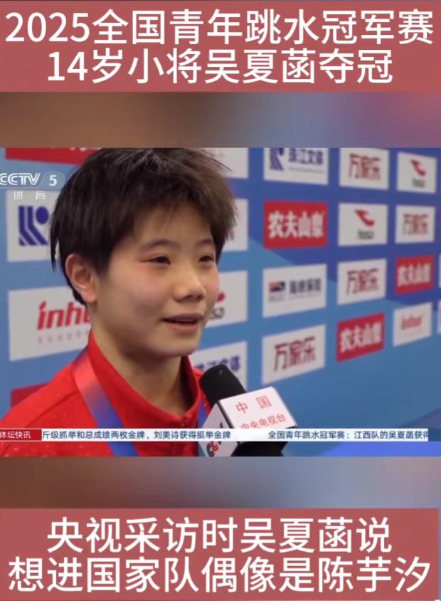 当14岁全国冠军在央视说: 我偶像是陈芋汐 这一刻,比金牌更闪耀。 2025年全国青年跳水冠军赛, 14岁冠军吴夏菡在央视镜头前的 一句话,定义了真正的“顶流”: “我的偶像是陈芋汐姐姐。” 这不是个例。 在全国青年锦标赛上, 无数小将的偶像答案惊人一致一一 陈芋汐。 他们用最朴素的词形容她: “因为她跳得好,动作优美。"一一 这是对她绝对实力的仰望。 “因为她坚持不懈!” 一一 这是对她钢铁意志的追随。 “她能坚持,太自律了!”一一 这是对她极致品格的向往。 她为何能成为现象级偶像? 因为陈芋汐代表了一种 “令人敬畏的反差”: 她是天才,却过着最苦行僧的生活 她家境优渥,却对自己最狠 她赛场上霸气,言谈中却充满内涵 这就是传承的力量! 年轻人看到: 真正的榜样,不是遥不可及的神话, 而是一个“比你优秀的人, 正在比你拼命”的鲜活存在。 陈芋汐站在巅峰, 不仅照亮了中国跳水的现在, 更点燃了无数个未来。 这才是顶流一一用实力赢得比赛, 用人格赢得未来。