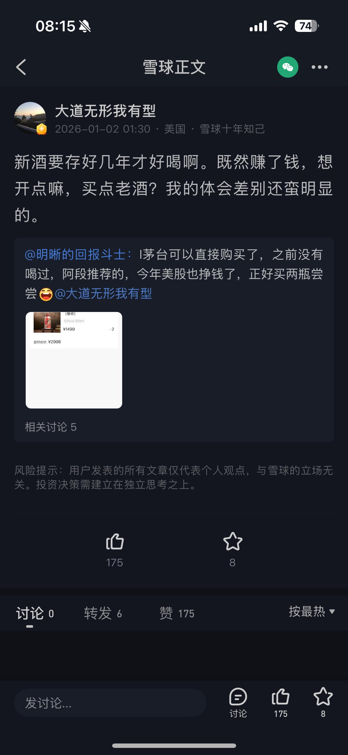 大道点评茅台年份老酒 认为年份老酒比新酒要好喝,在说明他的看法,放的越久、产品确实越好喝,价格高有这个产品品质特点的基础。 放眼开去,似乎没有什么商品符合这个特性哈,越长久反而越好,就越值钱(符合古董特点的感觉)。食品里似乎没有第二个例子,科技产品似乎更不可能了。独一无二 真是绝了。