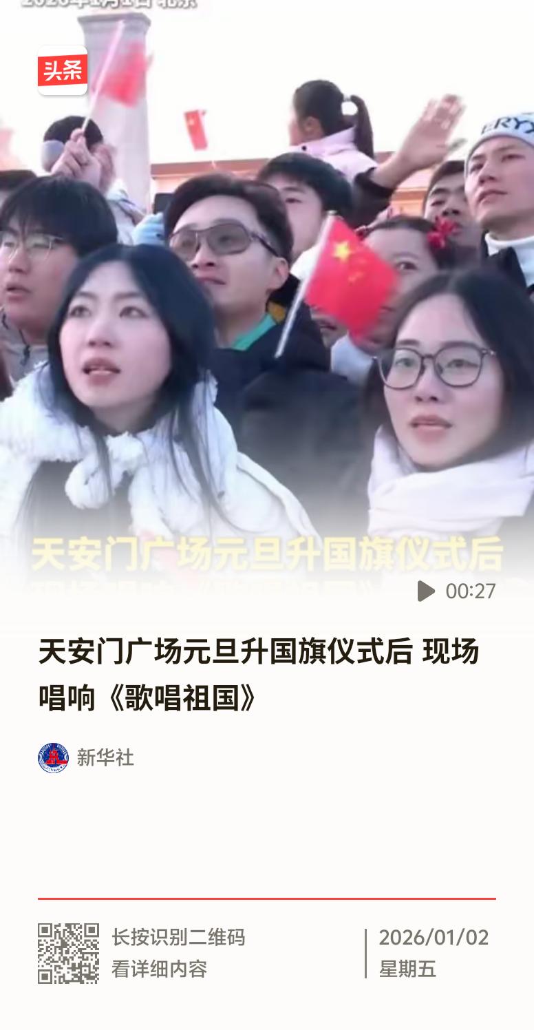 升旗仪式后现场唱响《歌唱祖国》,那场面简直太震撼了。激昂的旋律一响起,大家的爱国之情瞬间被点燃。每个人都饱含深情地唱着,仿佛歌声能把对祖国的爱都传递出去。 就像诗里说“九域风雷生踔厉,千年烽火淬雄才”,祖国历经风雨,一步步走到现在,靠的就是无数中华儿女的拼搏。在这歌声里,我感受到了大家对祖国深深的眷恋和祝福,也坚信祖国的未来会像歌里唱的那样,繁荣富强,越来越好!