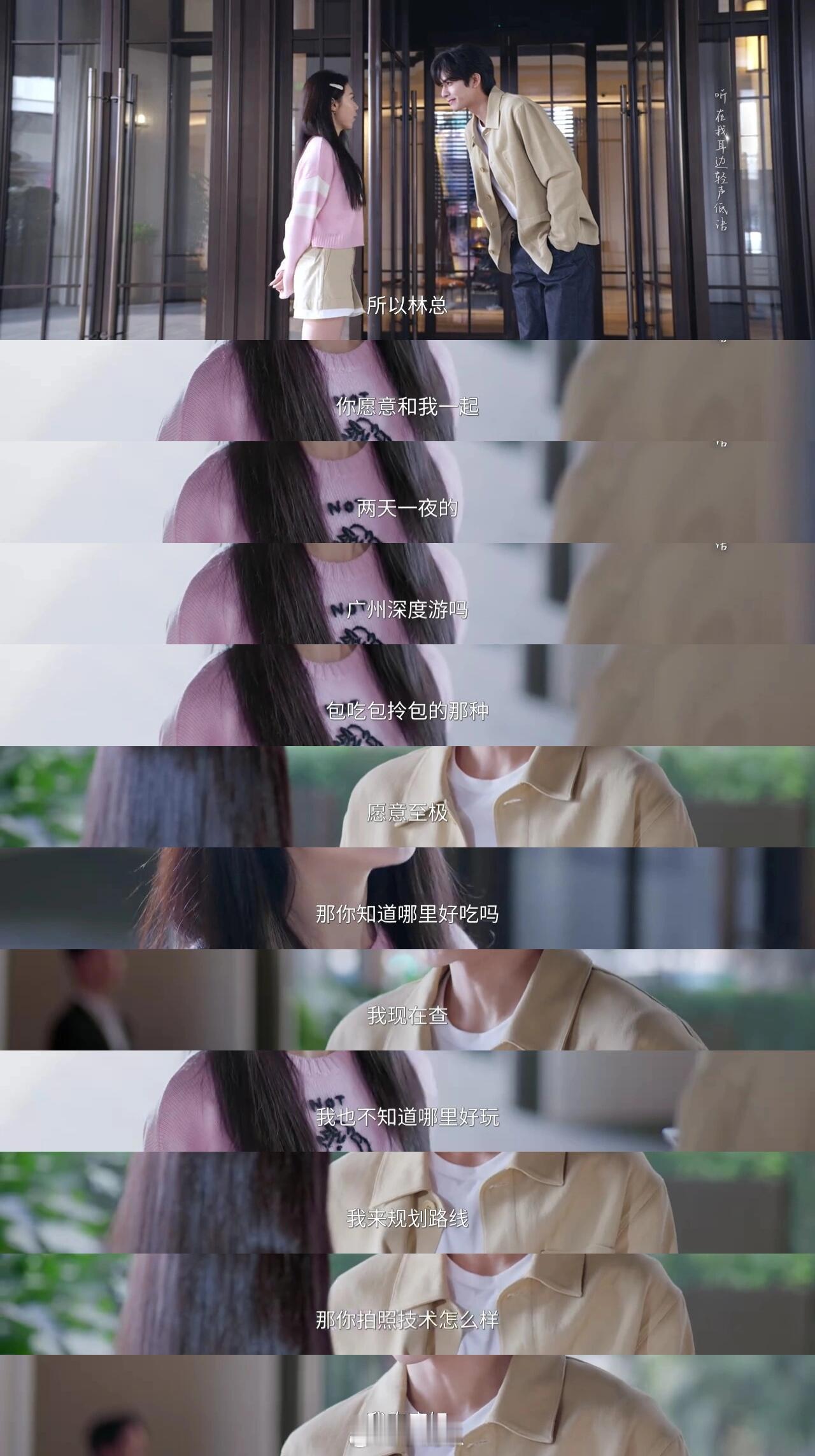 把暧昧期拍得细水长流很难得了顾漫还是太会了,写的剧情都好贴地、好真、好纯。感觉目前看起来像是把上下册结合起来拍了,在男女主在一起之前增加了一些剧情,换手机也提前了,新街口那段改成滑雪提前了,...而且新增的剧情各有各的合理。林屿森追人就涉及到办公室恋情的尴尬,他的考虑是追人应该光明正大的,但在公司容易产生流言蜚语,这往往对女方是不公平的。曦光对他说“我喜欢你光明正大地大展身手。”两个人都很敞开地在相处,确认了对方的好感但在考察期,不扭捏不拖沓,不猜忌不拉扯,救命太好嗑...出广州的差这一段也好有意思,怎么说呢,就是那种慢慢地追求、认真地追求的感觉,一起吃好吃的,拍好看的照片,逛完一天之后第二天睡到中午十二点,都是用旅游的模式在感受和适应各自的生活偏好。把暧昧期拍得细水长流的确实很难得了。剧集骄阳似我‖宋威龙‖赵今麦‖林屿森‖聂曦光‖