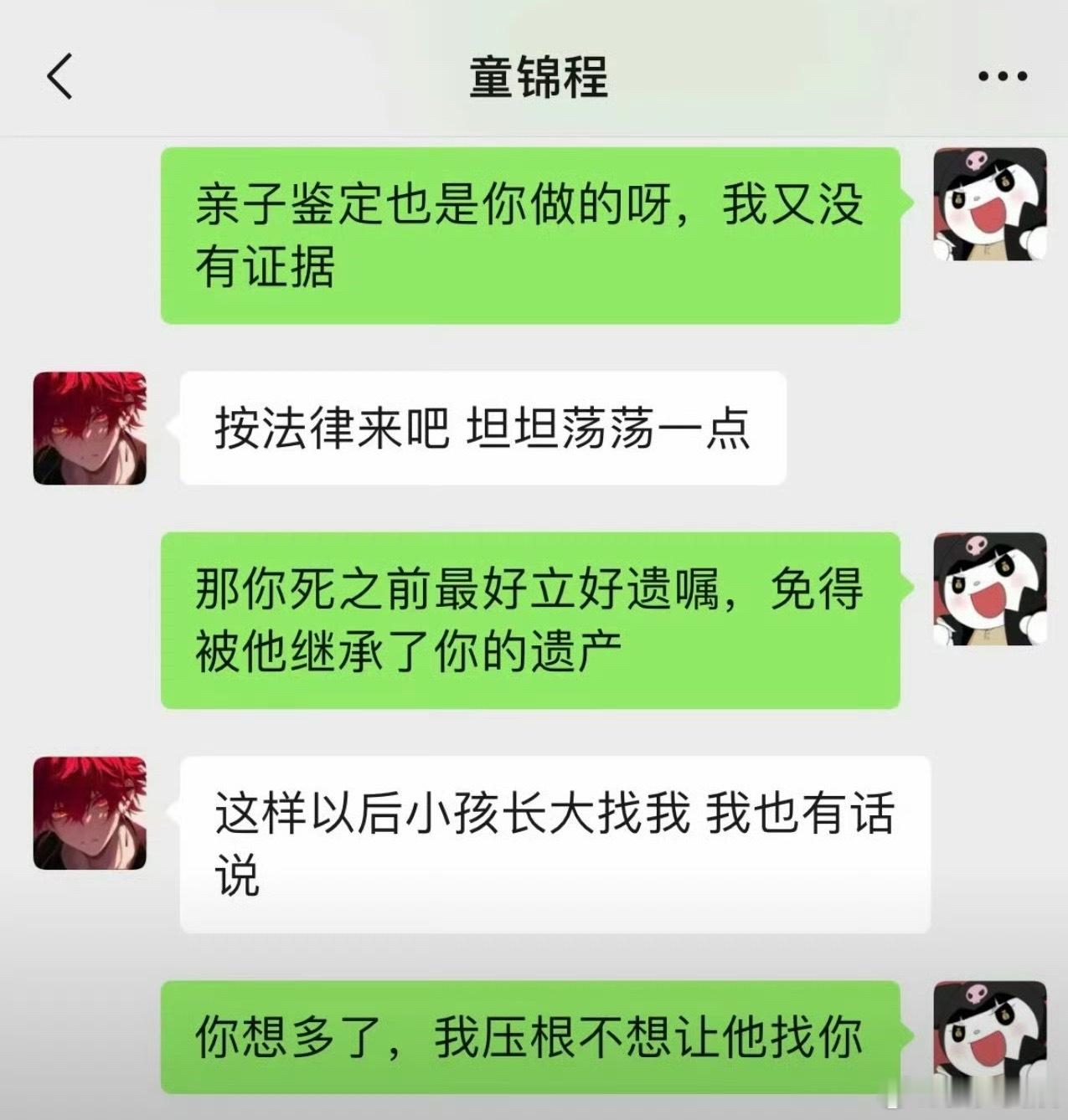 曝童锦程有孩子“我要纠正你,不是我获得你的钱,是你的孩子得到你的抚养费。五千也好