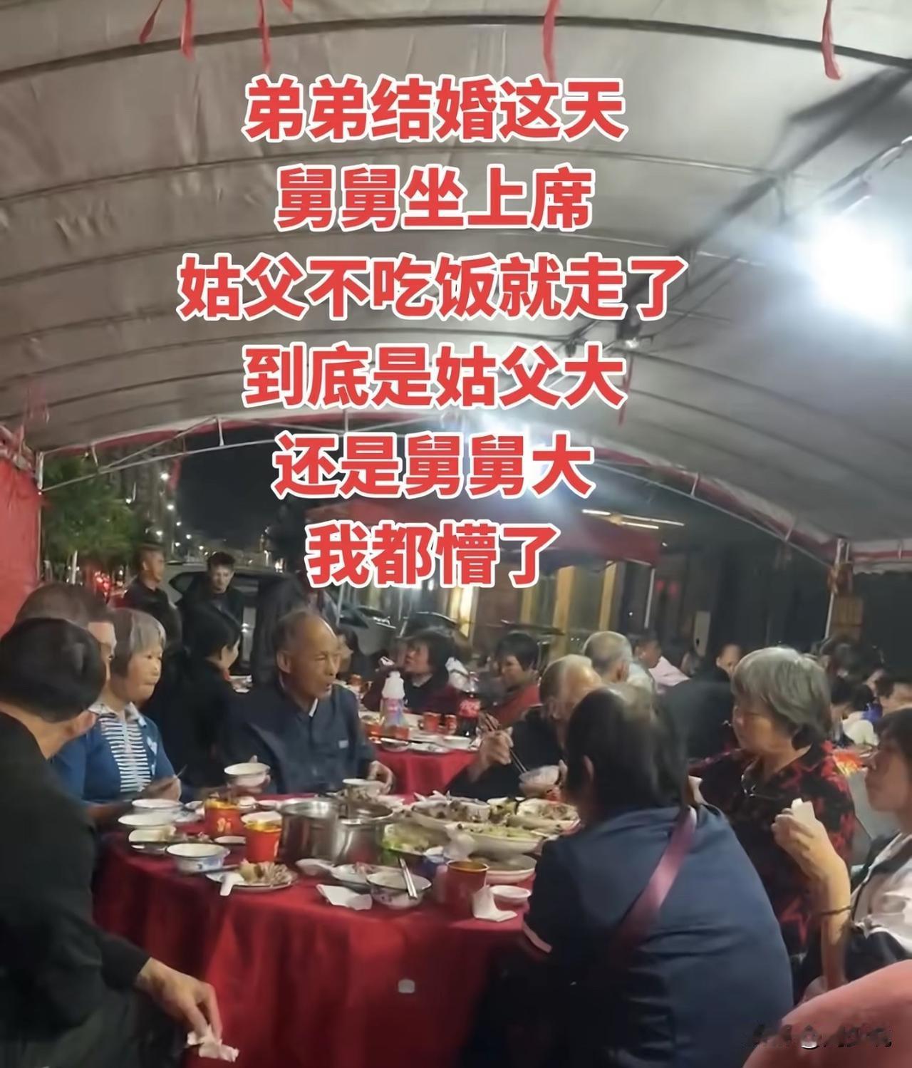 “真是头大了!”有网友求助:弟弟结婚这天,舅舅坐上席,姑父不吃饭就走了,到底是姑父大,还是舅舅大,我都懵了….. 有网友说:舅舅大,我也是做姑父的,姑父不能和舅舅比,天上雷公大,地下舅爷大,现在的年轻人啥也不懂,闹笑话了不是? 也有网友说:舅舅和姑父都是外亲,只有助力和建议权,没有决策权,家族是血脉延续。 还有网友则认为:姑父可能有急走了。别误认为是没坐上席走了,这根本不关他的事。 那么问题来了,到底是姑父大,还是舅舅大?#寻美三湘# #长沙新朋友#