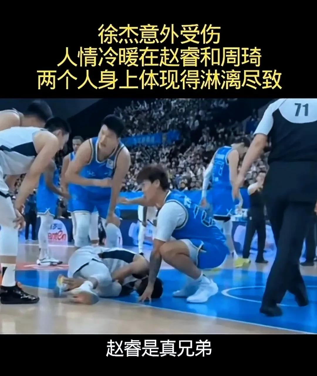 喜欢徐杰的球迷昨晚应该手机不离手,抖音头条各种看最新消息,起床后第一时间又是一看再看,虽然知道徐杰没事了,但都还是关心着。 通过昨晚的受伤,看清楚了街溜子的为人,在这里还得为赵睿叫好,兄弟情谊都在,还有雷蒙人品也很好,他也一直在徐杰身边,以后会支持着他。 人品见真章,保佑好的人和球迷喜欢的球员,愿他们身体永远健康,其他讨厌的就冷眼看着了。图片来自抖音,相信很多球迷都看到了。 最后再说一句,好好休息一阵子吧,徐杰,知道你又要带伤作战了,但还是歇段时间吧。