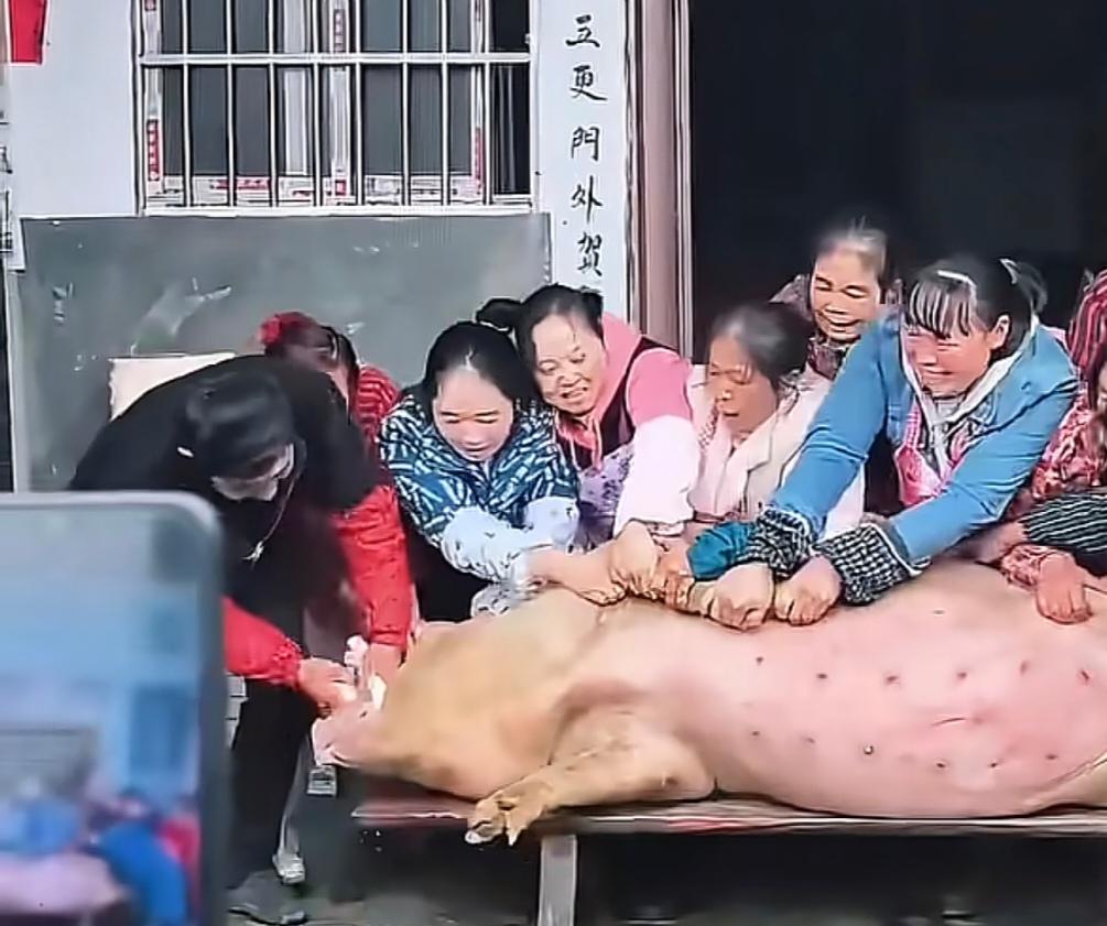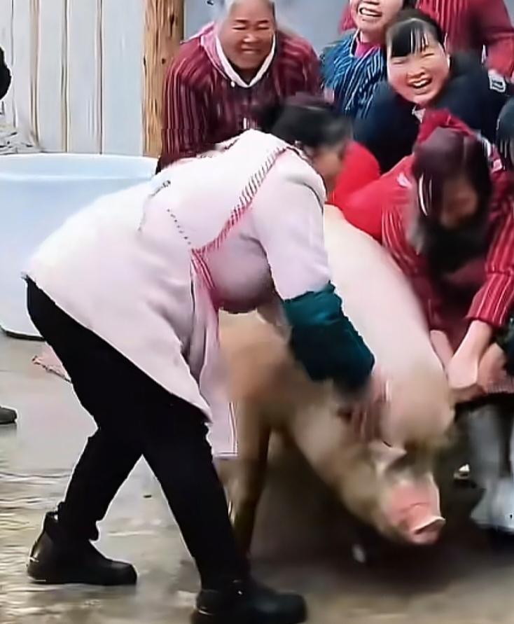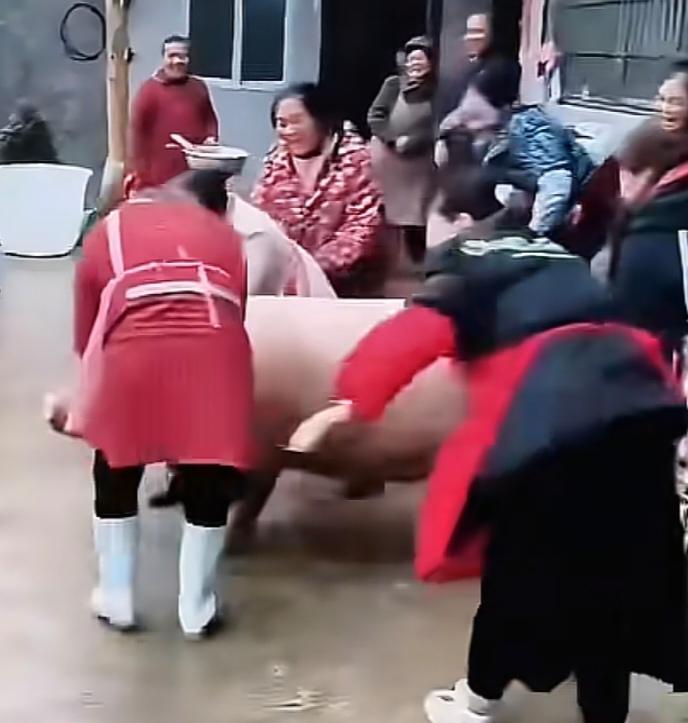 杀猪乐!谁说女子不如男?云南昭通盐津妇女按猪宰杀引热议,打破了古往今来年猪宰杀属于男人“操盘”,一直是男人“专利”活计的禁锢! 年关将至,一年一度的春节脚步声渐至踏来,农村阵阵充满年味的杀猪声开始此起彼伏,一幅幅犹如水墨画写意的人间烟火味画卷,又呈现在人们眼帘! 有消息显示,近日,在云南昭通市盐津县某地农村,10多名妇女按猪宰杀的喜悦场景,犹如春到人间,为冰封雪裹的当地乡村增色不少。 因为,尽管离春节还有一个多月,可大肥猪的嗷嗷叫声和妇女们宰杀年猪的欢笑声却此起彼伏,使整个乡村充满着幸福喜悦的气氛,从而不断引起公众的关注与热议。 据说,包括盐津在内,在全国许多地方,古往今来,每到年关的杀猪宰羊活计,那是男人们的专利,也是男人们不可或缺的“绝活”与“杀手锏”。 因为,杀猪宰羊是体力活,不仅要有“蛮力”,并且还要使巧力,谈到力气活,那可是身强力壮的男人们才能拥有和具备的“绝活”。 而对于柔情似水,身单力薄,手无缚鸡之力的女人来说,那无异于“水火不容”,是女人不搭界,也是力不从心,难以做到的活计。 然而,对盐津县乡村的这些妇女来说,她们可不信邪,也不服输,心里总在嘀咕:为啥男人干的活计女人就不能干?谁说女子不如男? 于是,10多名妇女蜂拥而上,将数百斤重的大肥猪团团围住,你揪猪耳朵,她抓猪脚杆,另外的人去捏着猪尾巴。 情急之中,有的姐妹干脆死死抓住猪的脊背和猪肚,众人齐心协力,硬是把数百斤重的大肥猪按在凳子上,在瞬间就结束了嗷嗷吼叫的猪命。 在整个抓猪宰杀的过程中,10多名妇女专注的表情,惊喜的笑声,情急之中的勇猛和睿智,使整个杀猪现场,活脱脱呈现出温馨和谐的人间烟火味。 而每每看到这样的场景,使人既羡慕,又敬佩,还品味到了一种难以言喻的年味,从中目睹了一幅别样的乡村幸福、喜悦的美景图画。