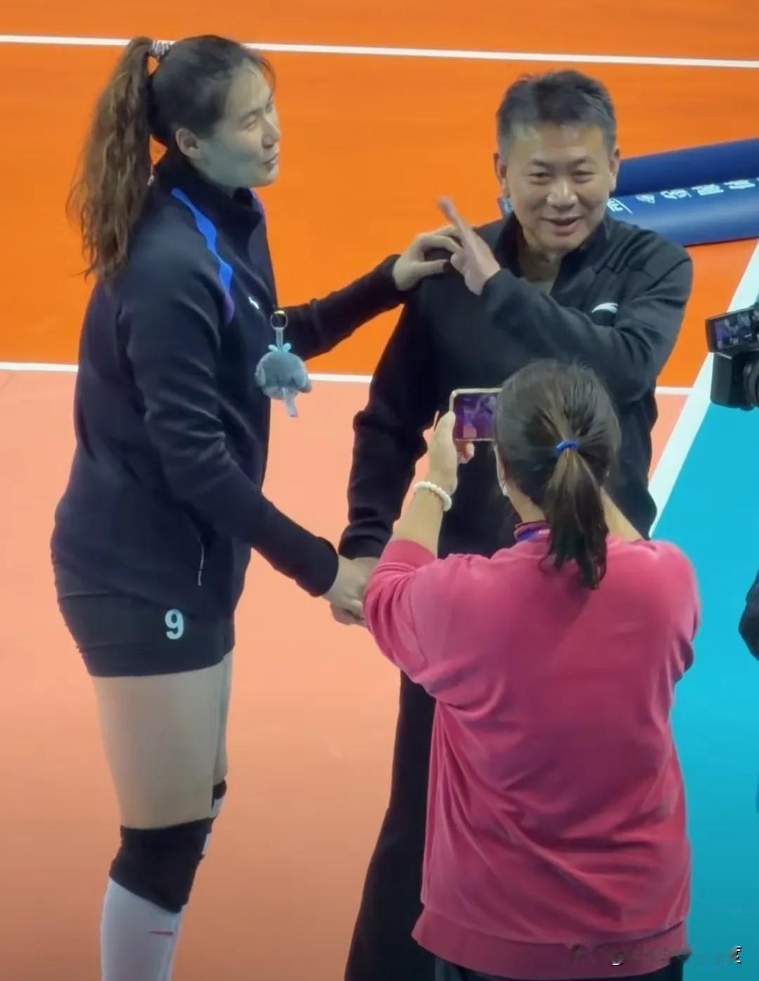 你们见过队员扣球差点砸中自己主教练的吗? 比赛里王云蕗一个扣球不小心直奔蔡斌指导去了!吓得她赶紧跑过去,拉着蔡导胳膊连连道歉,那小表情又慌又萌。没想到蔡斌一点没生气,反而乐呵呵地跟旁边人夸她,还竖起了大拇指。 我觉得这有趣的一幕,恰恰说明队里氛围挺好。严厉归严厉,但这种师徒间的信任和轻松瞬间,更显团队温度。 赛场上这种有爱的小插曲,是不是比单纯赢球更让人暖心?李盈莹 女排主帅之我见