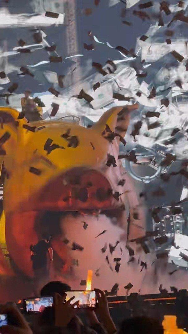 台灣天后蔡依林(Jolin)《PLEASURE》世界巡迴演唱會一連3日於台北大巨蛋舉行,尋日(1日)為台灣站尾場,繼首場企巨蟒邊唱邊跳、第2場超高「彩翼飛馬」繞場一周後,今次佢帶住10米尺長「禁忌之劍」登場,企上5層樓高、象徵集結貪、嗔、癡、慾於一身嘅巨型「貪婪金豬」,飆唱《Bloody Mary》,掀起全場高潮。當佢獻唱《Bloody Mary》歌詞「Money money money」時,金豬瞬間化身為瘋狂吐鈔機,大量「愉悅紙鈔」自高空傾瀉而下,將舞台轉化為「原慾樂園」,隨即在低吟《HUSH LITTLE BABY》與演唱《我超會》時,特技舞者攀爬金豬結構上下翻騰,似足極限人體藝術夠震撼,台下粉絲瘋狂搶「愉悅紙鈔」,氣氛High爆。舞台隨後瞬間轉換成名畫「最後的晚餐」場景,十二名舞者高舉印有蔡依林臉孔嘅蛋糕,透過《甜秘密》隱喻食欲嘅失控與誘惑,相當吸睛。蔡依林唱完名曲《玫瑰少年》後,佢熱情同粉絲打招呼,笑指昨下午同粉絲有個私密見面會,唔少歌迷敲碗加場,佢幽默說:「其實我也好希望可以多跟大家見面,如果某一天大家來大巨蛋看到沒活動,就打給我,我趕快衝進來表演。」佢亦急急解釋:「大巨蛋太難約,一約到我馬上通知你們。」粉絲大聲尖叫嗌「好」。佢仲自嘲第2場跨年夜時口誤講錯「向2024說聲再見」:「我在台上喊倒數,一講完,我才發現剛在講甚麼?你們會有這種狀況腦筋秀逗?」下秒爆料好友同佢一樣會腦筋秀逗:「我朋友把(牛)看成好大的大象。」蔡依林尋日於慶功宴上受訪分享籌備階段遇到困難與艱辛,並宣布3月將前往深圳開唱,下周10日將現身大巨蛋舉辦韓國兩大音樂頒獎典禮之一嘅「金唱片頒獎典禮」,佢將擔任頒獎嘉賓,屆時會與許光漢、宋仲基、邊佑錫、安孝燮及CORTIS、ENHYPEN、IVE、izna、JENNIE(BLACKPINK)、KiiiKiii、LE SSERAFIM等同台,粉絲十分期待。談到今次大巨蛋演唱會最困難的部分,蔡依林坦言並非單純唱跳,而係整體節目精準度,包括從導演調度、道具進出、舞台流暢度,到服裝換場時間點,每一秒都必須拿捏得非常精準:「這是需要整個團隊一起配合完成的事情。」佢又特別感謝團隊默契合作,先可以順利完成每一場演出。首次於大巨蛋演出,蔡依林登上30米長巨蟒邊唱邊跳,又企5層樓高的巨型金豬上飆唱,氣勢十足,佢透露今次舞台上冇高空恐懼感,仲將巨蟒形容為「靈蛇」,佢企喺蛇上面有感覺到上下搖擺,有種搭海盜船嘅刺激快感,相當享受舞台設計:「在彩排首度站上去時就覺得非常開心,但同時也必須在心中精算歌曲進度,才能精準銜接下一首歌的表演。」佢又為演唱會打造許多大大小小精美道具,誠意滿滿,蔡依林笑說自己對節目內容與道具設計相當興奮,有啲道具更係開唱前3日先到手,好多細節都係邊彩排邊調整。圓滿結束3場大巨蛋演唱會,粉絲熱情望加場,佢笑說要先有場地先可以舉辦:「今年是沒有機會,高雄也有問過了。」蔡依林向來自我要求好高,演出細節親力親為,台北大巨蛋只唱3場,佢體感就似足唱咗5場,不過佢因為先前喺美國洛杉磯、台中都密集彩排,身體早已習慣大場地表演,起初第一次走位時覺得又攰又辛苦,但之後身體自然適應:「第一次很累,後面就沒感覺了。」