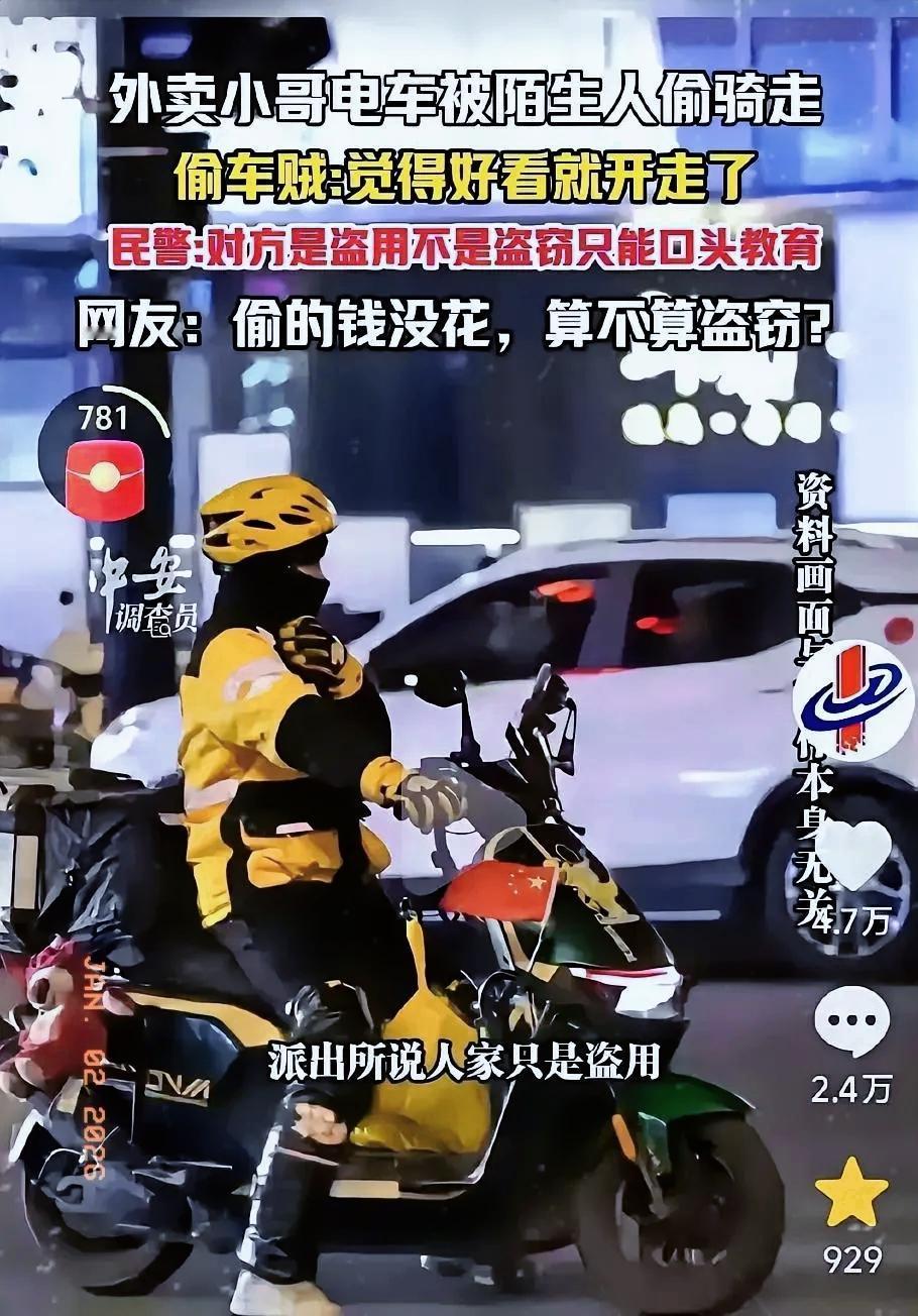 无锡一外卖小哥的代步车被盗, 偷车贼被找到后声称只是骑去逛了一圈。 小哥因车辆失窃亏损数百元, 索赔无果, 警方未认定盗窃仅建议民事维权。 这位小哥拒绝封口钱, 找法律援助准备起诉, 只为讨回公道。