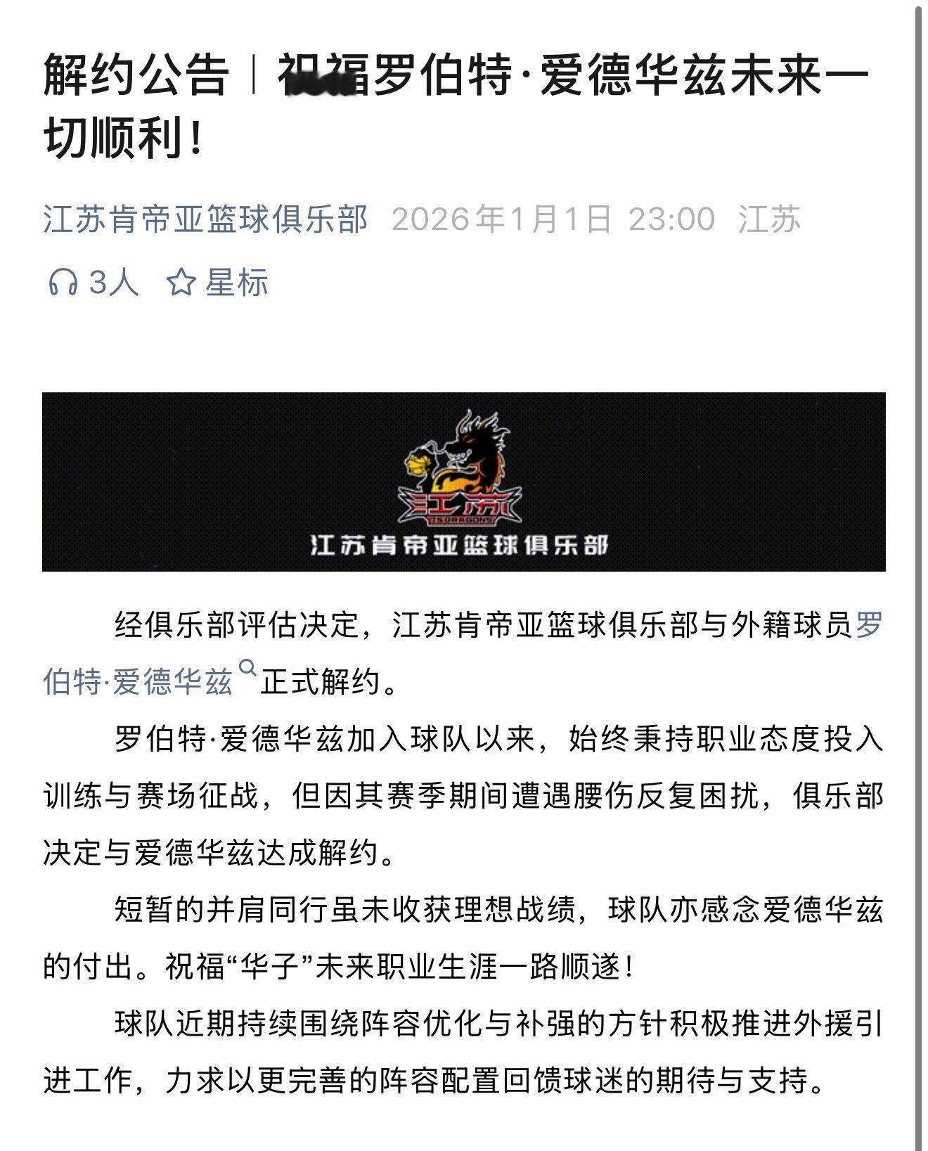 山西男篮裁掉黑根斯,已经在寻找新外援,另外江苏男篮也官宣了与爱德华兹解约。cba