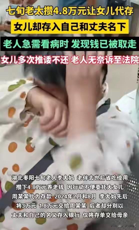 湖北枣阳,一七旬大妈将省吃俭用下来的4.8万元交给女儿,让女儿帮着自己存进银行,结果女儿转头把3万以丈夫名义、另外1.8万元以自己名义存进了银行,随后把两张存单给了母亲,等母亲生病需要钱时,发现存单竟然被挂失了,气愤之余,母亲将女儿告上了法院。 李大妈已经年过七旬,因为自己只有一个女儿周某,所以,李大妈也不指望对方将来能够给自己养老,平时,李大妈就把省吃俭用下来的钱都攒在一起。 攒了4,8万元后,李大妈觉得放在家里不安全,于是便找来女儿周某,希望周某帮着自己存进银行。 周某二话不说,拿着钱就让老公带着自己去了银行,随后,周某将3万元以丈夫的名义存了进去,另外的1.8万元,则是以自己的名义存进去的。 待周某把两张存单交给母亲时,虽然李大妈觉得有些不妥,但是看到钱都存进银行了,所以,李大妈也没有太在意。 然而,一段时间之后,李大妈却因生病要住院,随后便让周某去银行把钱取出来,结果周某不是没时间,就是在外面,总之,周某总是以各种理由回绝。 无奈,李大妈只能拿着存单去银行,可是柜员却告诉李大妈,这些存单都已经被挂失了,也就是说,李大妈拿着的是两张废纸。 事后,李大妈多次要求女儿还钱,甚至还找了村委协调,然而,即便村委协调之后,周某还是拒绝还款,最终,李大妈将女儿周某告上了法院。 事发后,有人说了自己的经历,婆婆年纪大了,让我保管她的钱,家里人都没有意见,我问老人为什么不让她儿子保管,老人说大家都知道你不占便宜,放你这里放心,瞬间觉得自己压力巨大。 还有人说,我妈有3万块钱要存我这里,被我拒绝了,用她自己的身份证去存的定期,密码只有她自己知道,不是不敢放,是因为放我这里有时候解释不清楚。 也有人说,老人虽然说放你这里,其实就是打算以后走的时候都给你,但是她生前如果要用这笔钱,比如治病看医生,还是要用的,如果一下子自己走了,钱都存在自己这里,孩子不知道的话,这些钱都成了银行的了,早点给孩子,碰到这种情况的,也真的是很难。 其实,周某这种行为,在法律上算是不当得利。 母亲李大妈委托女儿,将这笔钱存进银行,但是女儿却据为己有,这种据为己有的行为,没有任何的法律基础。 民法典第九百八十七条规定,得利人知道或者应当知道取得的利益没有法律根据的,受损失的人可以请求得利人返还其取得的利益并依法赔偿损失。 因此,当李大妈要求女儿归还时,女儿没有任何权利占为己有不予归还。最后,经法院审理,法院也是判决女儿周某限期偿还这4.8万元并承担诉讼费用。 其实,毕竟是母女关系,其实,如果李大妈执意要追究女儿刑事责任的,其实也是有可能的,即侵占罪。 按照刑法的规定,以非法占有为目的,实施将代为保管的他人财物、遗忘物或者埋藏物非法占为己有,数额较大,拒不交还,从而构成的犯罪。 那本案中,因为这笔钱是女儿周某代为保管的,保管期间,周某将其据为己有,而且数额巨大,因此这已经符合了侵占罪的构成,周某或面临2年以下有期徒刑的处罚,所以,周某不予归还的行为,已经构成了刑事犯罪,只不过因为母亲没有去追究罢了。 对此,你对本案有什么看法? —————————— 关注我,带你评析法律热点,关注冷暖人生。 文章原创,抄袭必究