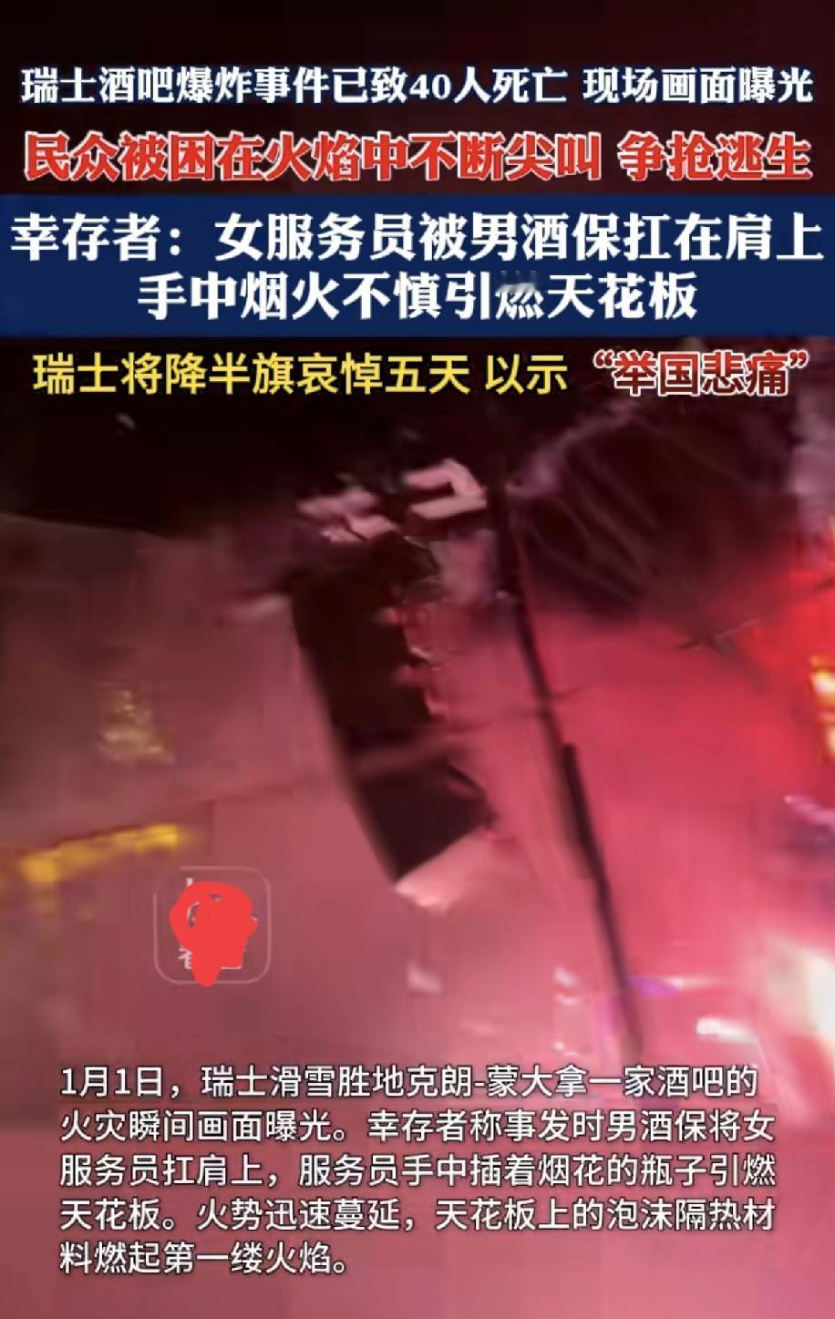 大家拭目以待,瑞士酒吧爆炸40人死亡就降个半旗致哀就完了,不会有追责,包括他们的消防等部门不会有任何责任,更不会有领导责任的说法,再了不起就那个老板当个替罪羊,就看他们的保险公司赔不赔了。