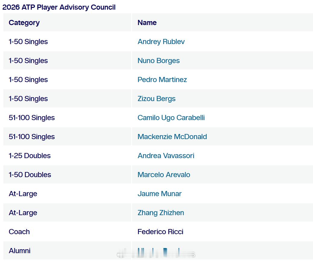 张之臻入选ATP球员咨询委员会,开启三年任期ATP球员咨询委员会由球员选举产生,包括单打1-50名、单打51-100名、双打1-25名和双打1-50名以及全体球员组,皆由来自同一排名类别的球员成员选举产生。今年的第一次会议将在澳网前于墨尔本举行。all tennis all life澳网2026