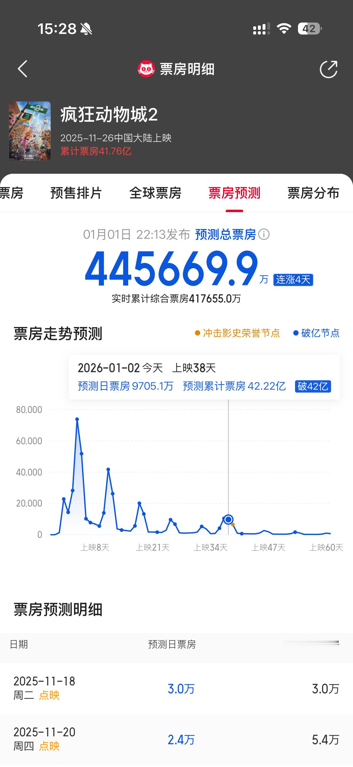 由于元旦档没一个能打的,《疯狂动物城2》昨日拿下日票房1亿!截至目前:内地总票房来到了41➕亿🌟预测总票房44.5亿➕,届时可以超越《复仇者联盟4》成为内地进口片票房第一!