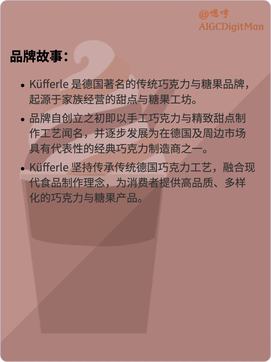 Küfferle 是德国著名的传统巧克力与糖果品牌,起源于家族经营的甜点与糖果工坊。