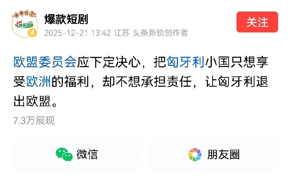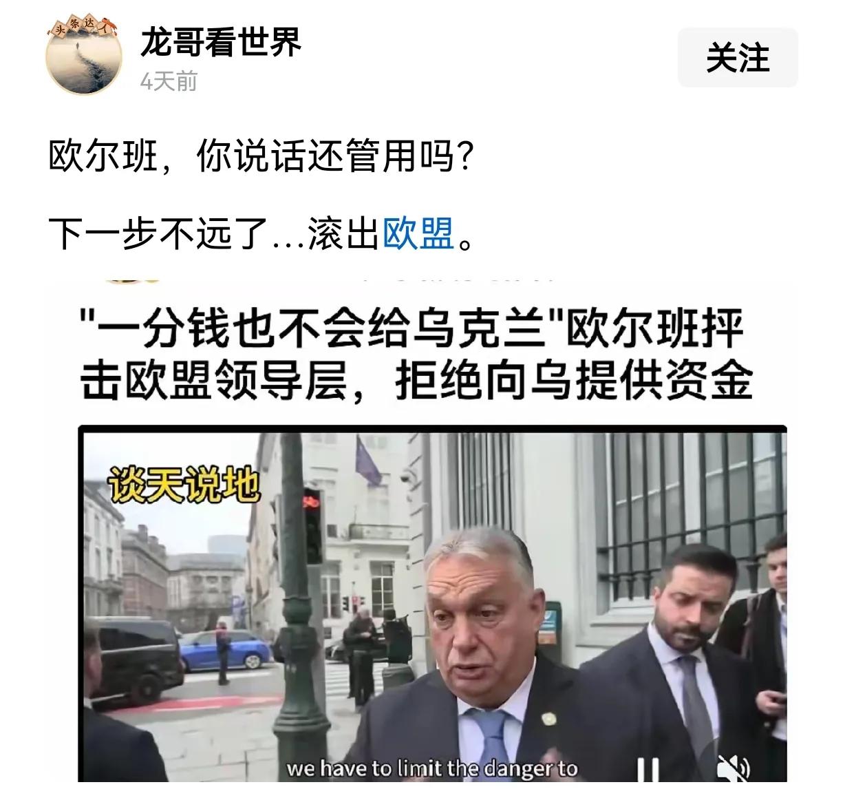 知道欧盟一致性原则吗?你这建议被匈牙利一票否决。欧盟各国都有权利表达自己的立场,包括对外交往,你支持欧盟搞独裁?匈牙利以前就是乌克兰的角色,替欧洲挡了土耳其百多年,得到了什么,人家心里清楚的很。匈牙利将来会不会独善其身很不好说,但有一点很清楚,欧洲与俄罗斯的关系只会越来越紧张,不经过战争这种关系缓和不了。