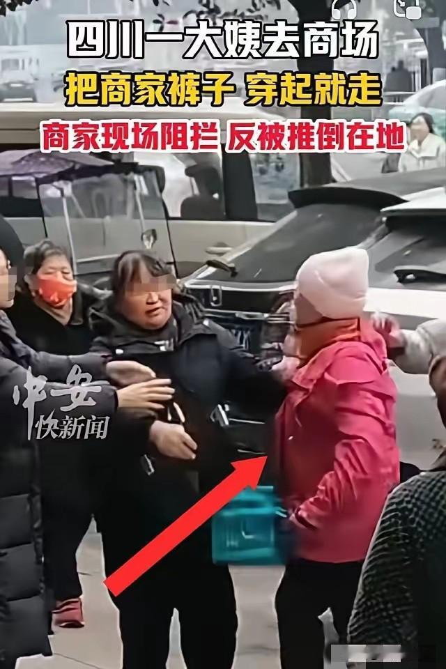 太横了!四川,一大姨试穿过服装店的裤子后,竟然穿起来转身就走,店主看见赶紧追过去提醒,大姨却理也不理直接离开。店主抓住大姨的胳膊一路追到停车场,大姨被围观,恼怒下又是打又是骂,直接将店主推倒在地! 逛服装店试穿合身就买,不合身就放回,这是再基本不过的常识,可四川一位大姨的操作,直接让围观者看傻了眼。 事发当天,四川当地一家街边服装店里,店主正忙着整理刚到的新款,一位中年大姨推门走进店里。 大姨在货架间来回打量,最终停在一排裤子前,翻看着不同款式和尺码,随后拿起一条合身的裤子,询问店主试衣间的位置。店主热情指引后,便继续招呼其他顾客,没多想太多。 没过几分钟,大姨从试衣间走了出来,对着镜子前后打量了一番,还抬手拽了拽裤脚,看起来对这条裤子颇为满意。 店主见状上前询问是否需要开票,可大姨完全没回应,反而转身就朝着店门口走去。 店主以为大姨没听见,又喊了一声提醒付款,可大姨脚步没停,反而加快速度往外走,身上穿的还是那条没付款的新裤子。 这一下店主才反应过来,大姨是想直接穿着裤子离开,赶紧放下手里的活追了出去。 店外的人行道上,店主快步追上大姨,轻声提醒她还没付款,可大姨像是没听见一样,头也不回地继续往前走,甚至特意绕开了店主的目光,径直朝着附近的停车场方向走去。 店主急了,上前轻轻抓住大姨的胳膊,再次说明裤子需要付款才能带走,希望她能返回店里处理。 可这一抓彻底惹恼了大姨,她猛地甩开店主的手,脸上满是怒气。此时,不少路过的行人和停车场里的车主都注意到了这边的动静,纷纷围了过来想看个究竟。 被围观后,大姨的情绪变得更加激动,对着店主劈头盖脸地骂了起来,言辞十分难听。 店主耐着性子解释,说做生意不容易,一条裤子也是成本,希望大姨要么付款要么把裤子脱下来归还,可大姨完全不听,一边骂一边伸手推搡店主。 起初只是轻微的推挡,后来情绪越来越失控,大姨抬起手对着店主的胳膊、肩膀胡乱拍打,动作幅度越来越大。 周围的围观者见状,有人小声劝说大姨有话好好说,也有人提醒店主注意安全,可没人敢上前直接拉架。 混乱中,大姨突然伸出双手,猛地朝着店主的胸口一推,店主没防备,踉跄着后退了几步,重重地摔在停车场的水泥地上,疼得半天没站起来。 大姨推倒店主后,不仅没有丝毫愧疚,反而双手叉腰,站在原地继续指责谩骂,仿佛自己受了多大的委屈。 躺在地上的店主缓了好一会儿才慢慢爬起来,看着大姨身上依旧穿着那条没付款的裤子,又气又无奈。 围观的人群中有人拿出手机拍摄,大姨察觉到后,骂骂咧咧地转身朝着停车场深处走去,脚步依旧蛮横。 店主看着大姨远去的背影,再看看自己被推得发红的胳膊,只能无奈地摇了摇头。 周围的围观者议论纷纷,有人觉得大姨的做法实在过分,试穿不买很正常,直接穿走还动手打人就说不过去了;也有人说店主追出去维权没错,只是没想到会遭到这样的对待。 后来有围观者将现场拍摄的片段发到网上,很快引发了不少网友的关注。 大家纷纷讨论这件事,有人觉得不管什么年纪,都该讲诚信,做生意不容易,不能这样明晃晃地"拿"东西;也有人提醒店主,遇到这种情况可以选择报警处理,避免自己受到伤害。 这件事也让不少开店的网友感同身受,吐槽偶尔会遇到类似的顾客,试穿后不想买又不想脱,或者找各种理由推脱,处理起来十分棘手。而这位大姨的行为,无疑超出了正常消费的范畴,既破坏了消费秩序,也伤害了他人。 对此,你们有什么看法,欢迎评论留言~