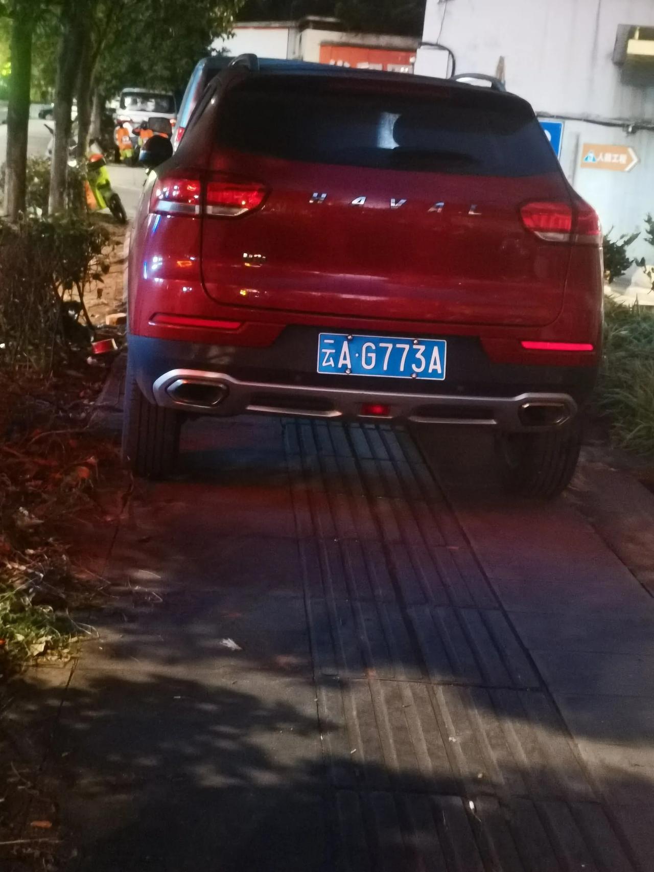 这种车的停车方式与众不同,打行人的通道堵了,盲道也堵了,这种还挺多的,真的是想法超前,反正就是让他人无路可走,把自己的快乐寄托在别人的痛苦之上。
