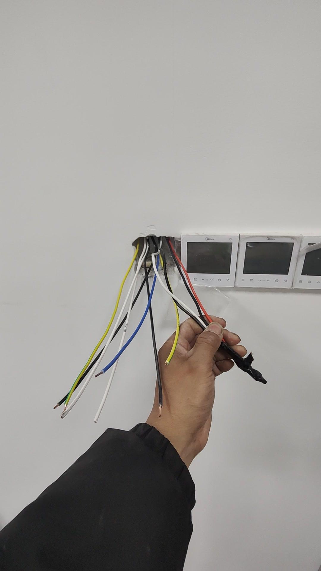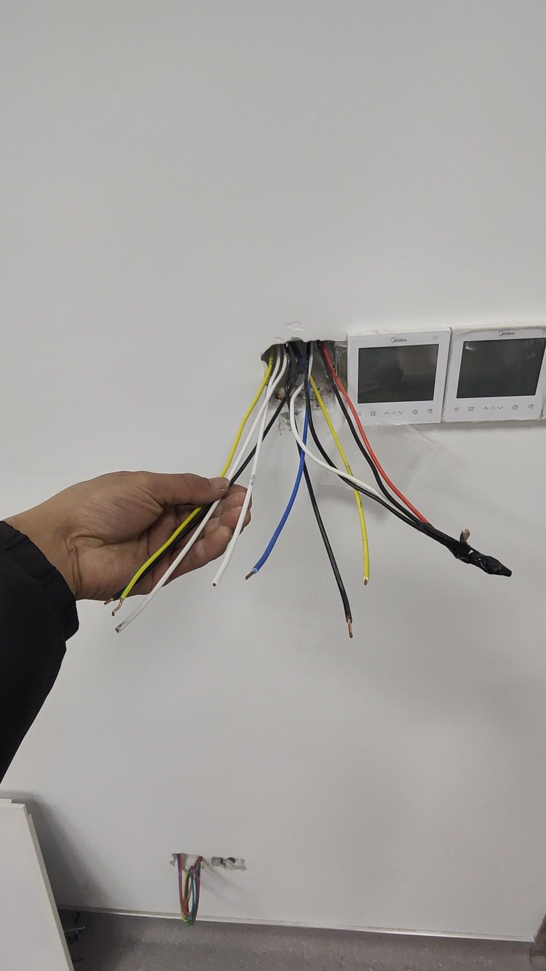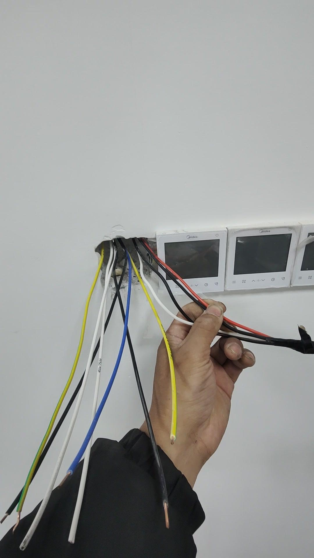 双控开关多根线?新手必看!🔧双控开关接线总让人头大,今天遇到个奇怪的情况:正常双控应该是6根线,这里却有7根! 1️⃣先看这明显的火线,颜色好区分,问题就在多出来的线。蓝色线是哪里来的? 2️⃣再检查控制线,这边三根是控制线,那边也是,可多出来的这根实在摸不着头脑,难道是图纸有问题?还是我哪里没看明白? 3️⃣从线盒出来的线总共7根,比常规的多了一根,这根蓝色线到底是什么功能?有懂行的师傅能指点一下吗?