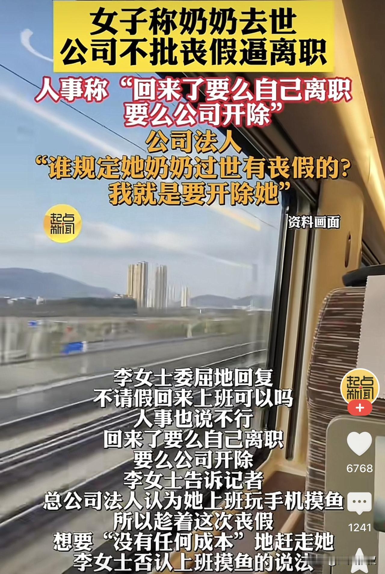 江苏常熟,一女子因为奶奶去世,于是跟公司经理请了五天假,随后便坐上了回家的火车,