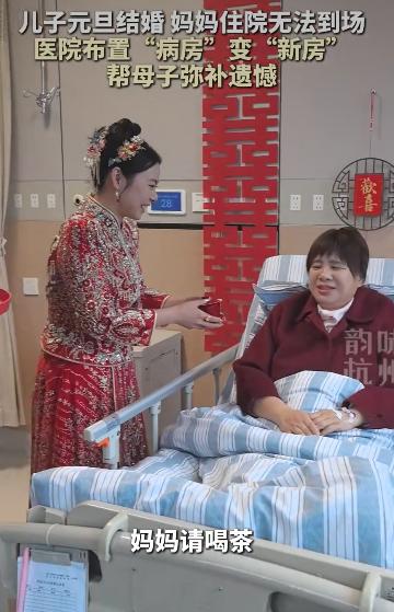 一位妈妈因为生病住院,没能赶上儿子的婚礼,结果医院和家人联手把病房改成了“临时新房”,让这场错过变得格外有意义。 事情是这样的,这位妈妈原本早就盼着参加儿子的婚礼,连婚礼当天的衣服都精心准备好了。可就在婚礼前几天,她突然病情加重,只能紧急住院治疗。儿子得知消息后,急得像热锅上的蚂蚁,一边要筹备婚礼,一边又放心不下住院的母亲。婚礼当天,妈妈躺在病床上,看着手机里儿子发来的婚礼现场照片,眼泪直往下掉,心里满是遗憾。 儿子看在眼里,疼在心里。他找到医院的工作人员,试探着问:“能不能把我妈妈的病房布置一下?我想让她也能感受到婚礼的喜庆。”医院听了这个请求,特别感动,立刻答应帮忙。护士们找来彩色的气球、拉花,把原本单调的病房装扮得温馨又喜庆。还特意在床头贴上“新婚快乐”的横幅,窗台上摆满了鲜花,整个病房瞬间有了“家”的味道。 更让人感动的是,儿子和儿媳还专门换上婚礼当天的礼服,带着喜糖和喜饼来到病房。他们给妈妈敬茶、改口,就像在婚礼现场一样。妈妈看着眼前的一切,激动得说不出话来,拉着儿媳的手直抹眼泪。儿媳笑着说:“妈,虽然您没能去婚礼现场,但这里就是我们的‘新房’,您就是我们最重要的家人。”病房里充满了欢声笑语,连隔壁床的病友都跟着鼓掌祝福。 这件事传开后,网友们纷纷点赞。有人说:“医院太有爱了,这才是真正的‘以人为本’!”也有人感慨:“儿子儿媳真孝顺,妈妈虽然错过了婚礼,但收获了更珍贵的亲情。”其实,这背后反映的是咱们社会对老年人的关爱,以及对家庭情感的重视。现在很多医院都在推进病房改造,不仅改善硬件设施,还注重人文关怀。比如增加独立卫生间、无障碍设施,甚至像这次一样,根据患者的需求进行个性化布置,让病房不再只是冷冰冰的治病场所,而是充满温度的“临时家园”。 对于这位妈妈来说,虽然没能亲自到婚礼现场,但病房里的这场“特殊仪式”,反而让她更深刻地感受到了家人的爱。而儿子和儿媳的用心安排,也让这份亲情更加深厚。有时候,生活总会有些小遗憾,但只要用心去弥补,遗憾也能变成美好的回忆。就像这场病房里的“新房”,虽然简单,却充满了爱与温暖,让人忍不住为之动容。 来源:潇湘晨报
