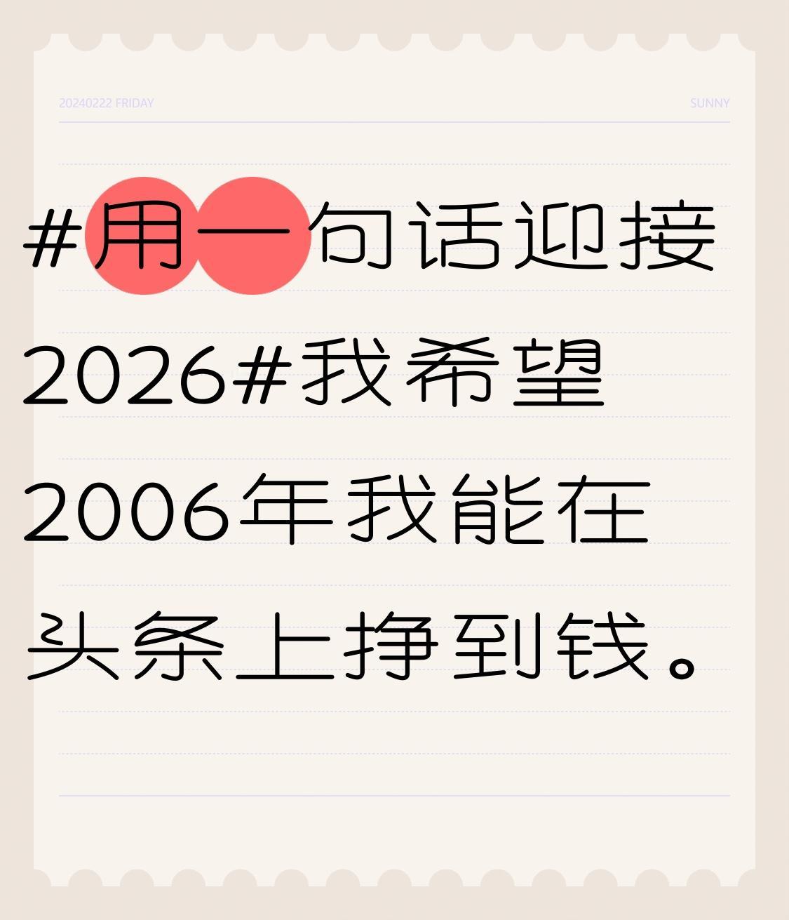 用一句话迎接2026我希望2006年我能在头条上挣到钱。