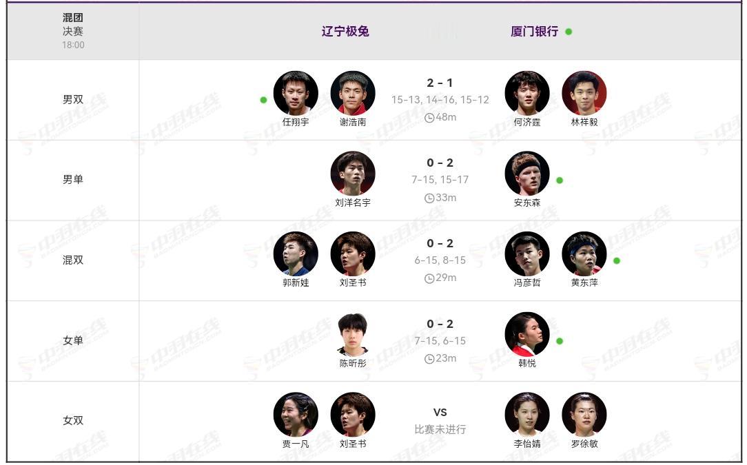 羽超联赛尘埃落定。 厦门银行3:1胜辽宁极兔,摘取桂冠。 继天王杯之后,刘洋名宇再一次输给了安东森。